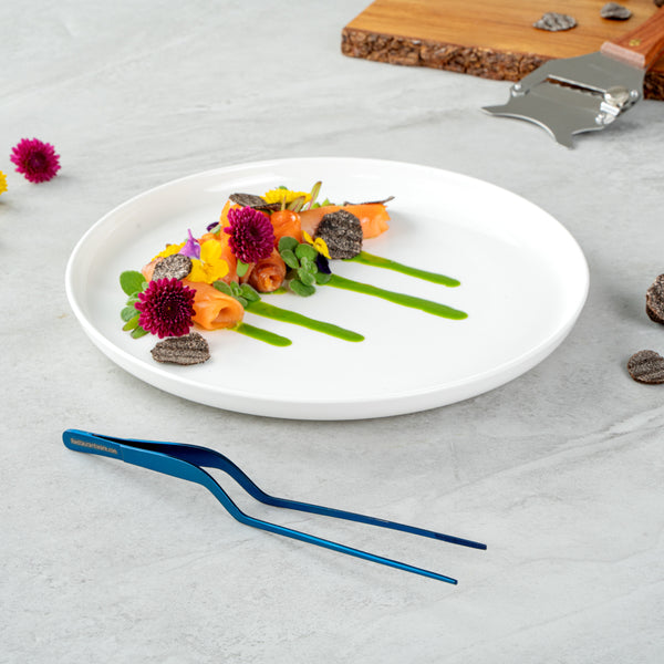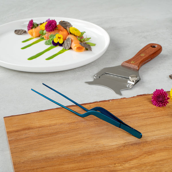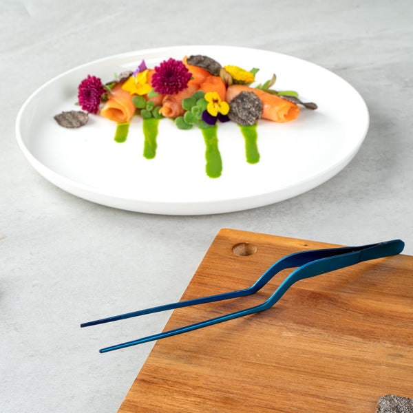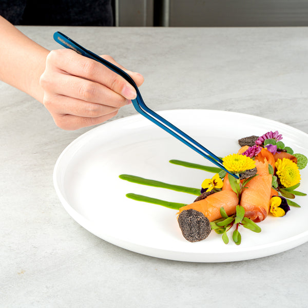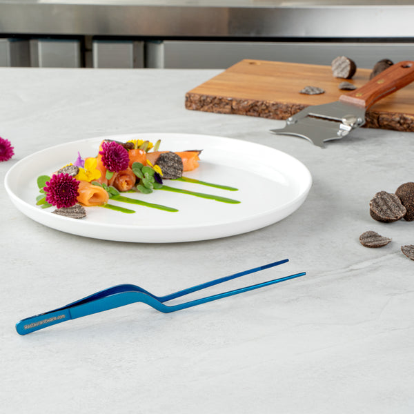 Get your hands on our Perfect Point Titanium Blue Stainless Steel Offset Tweezers for game-changing culinary experiences. Fabricated from blue titanium stainless steel, these food tweezers blend appealing design with exceptional durability, prepared for any kitchen ambiance. The distinctive offset designs and finely pointed tips of these stainless steel tweezers support accurate plating, particularly when dealing with intricate garnishes and decorative aspects. Suitable for both hot and cold food handling, these blue tweezers add versatile tools to your kitchen arsenal. Measuring 8 inches in length, these tweezers provides a comfortable hold, facilitating the careful crafting of your culinary masterpieces. Sold in 1 count boxes.