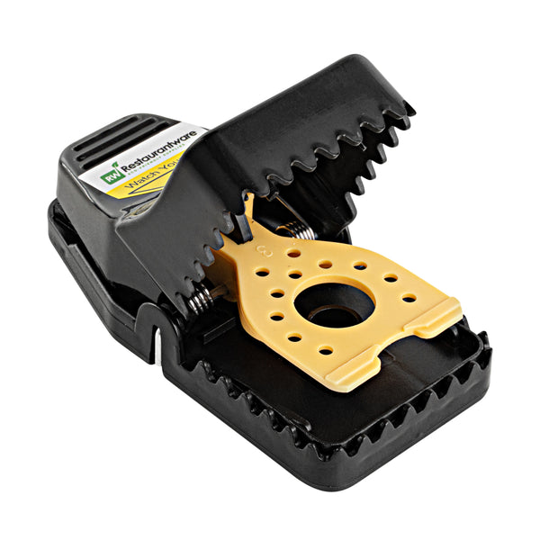Keep your house or farm unaffected by mice using our Pest Tek Black Plastic Mouse Traps. The durable ABS plastic construction of these traps for mice allows them to be reused for a long time with ease. Constructed with an interlocking teeth design, the mouth of these plastic mouse traps snaps close, killing the rodent instantly. Featuring a removable bait cup and an open-top design, you can quickly and effortlessly fill the cup of these reusable pest traps with peanut butter or nuts to lure mice. With a strong spring bar, these mouse catchers allow you to lock them by simply pulling the bar down. Plus, you can also release the trapped rodent into the garbage by pressing down the spring bar of these black plastic mouse traps. The trigger pedal of these mouse traps for home is highly-sensitive, allowing the trap to snap immediately after the rodent touches it. These mice traps are easy to clean and do not retain stains or odor. Each of these traps for rodents measures 4.5 inches in length by 2 inches in width by 2.25 inches in height. Sold in a 2 count box.