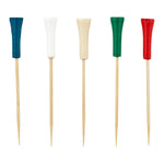 Enhance your food presentation with our Pixy sporty Assorted Bamboo Golf Tee Picks. Perfect for country clubs, golf courses, and sports enthusiasts, these unique cocktail picks feature multi-colored golf tee accents. Crafted from durable bamboo, these decorative skewers have a smooth surface for a comfortable eating experience. The sharp point of these golf tee picks makes piercing through fruits and vegetables a breeze. Being eco-friendly, these biodegradable and commercially compostable food picks are perfect for enjoying hot or cold dishes. With a neutral finish, these small bamboo skewers infuse a playful, rustic charm into your foodservice while fitting seamlessly into your decor. Each disposable golf tee pick measures 4 inches long. Shipped in a 1,000 count box.