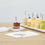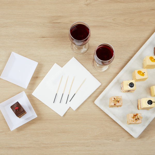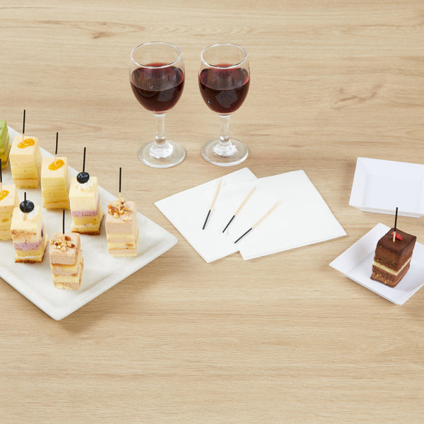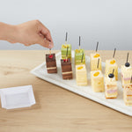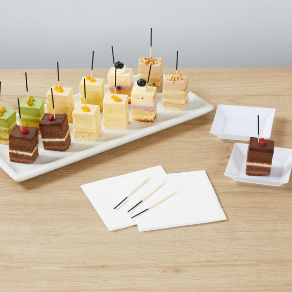 Enhance your cocktail presentations and desserts with our Pixy Bamboo Hand-Dipped Skewers. Featuring a sleek black finish, these skewers add a touch of elegance and sophistication to any dish. Crafted from sustainable bamboo, these wooden food picks offer a durable and disposable solution for food services. The smooth finish of these black skewers guarantees a comfortable, splinter-free experience, making them ideal for effortless handling. Designed with a sharp point, these bamboo toothpicks pierce through meats, cheeses, and fruits with ease, ensuring a seamless serving experience. These cocktail skewers measure 3.5 inches in length and are perfect for bite-sized portions. Sold in a 1000 count box.