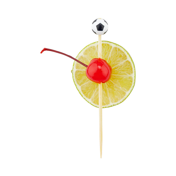 Score major points with your guests using our Pixy Black and White Bamboo Soccer Ball Skewers. The playful soccer ball design of these bamboo skewers adds a sporty touch to your dishes, making them an exciting choice for sports-themed parties, soccer enthusiasts' gatherings, or post-game events. Crafted from top-tier bamboo, these disposable skewers stand as a testament to our Pixy ecologically conscious initiatives. The eye-catching black and white pattern of these commercially compostable bamboo skewers injects a vibrant, fun-filled aesthetic into your presentations. Plus, the sharp tip of these appetizer skewers offers easy skewering, while the soccer-ball-shaped top provides a comfortable handle for guests to hold while they indulge in their tasty treats. The whimsical soccer ball top of these disposable skewers is versatile enough to complement hot and cold munchies. Each biodegradable food pick measures 4 inches long. Sold in a 1,000 count box.