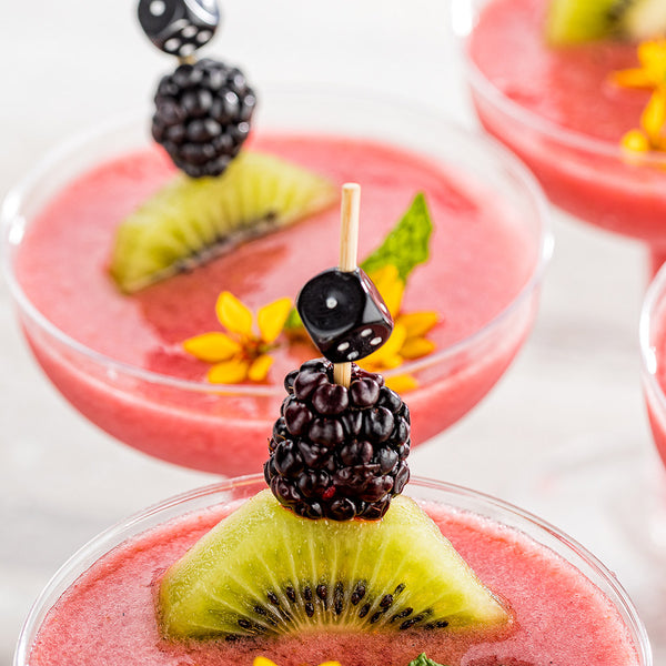 Add flair to your appetizers with our Pixy unique Black Bamboo Feeling Lucky Dice Skewers. These disposable appetizer skewers showcase a black and white dice decoration on top, adding a touch of visual interest to cocktail parties and buffet stations. Made from eco-friendly bamboo, these cocktail skewers provide a reliable strength that remains stable when loaded with various food items. These bamboo skewers feature a smooth, splinter-free design that ensures a comfortable eating experience without wood pieces getting in the way. These bamboo decorative picks are biodegradable and commercially compostable, ensuring an earth-friendly disposal option. The sharp tips of these party food toothpicks easily pierce through different food items, maintaining the structure of the ingredients. Measuring 4 inches in length by 0.5 inches in width by 0.5 inches in height, these dice skewers come in a 1,000 count box.