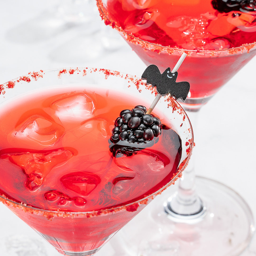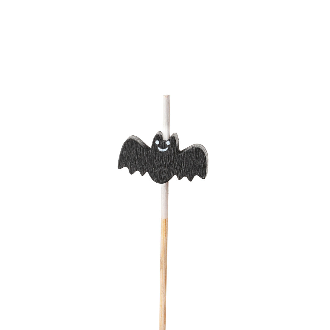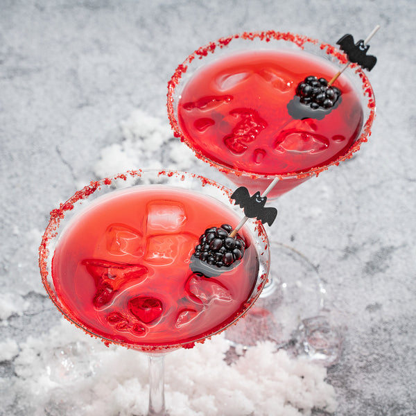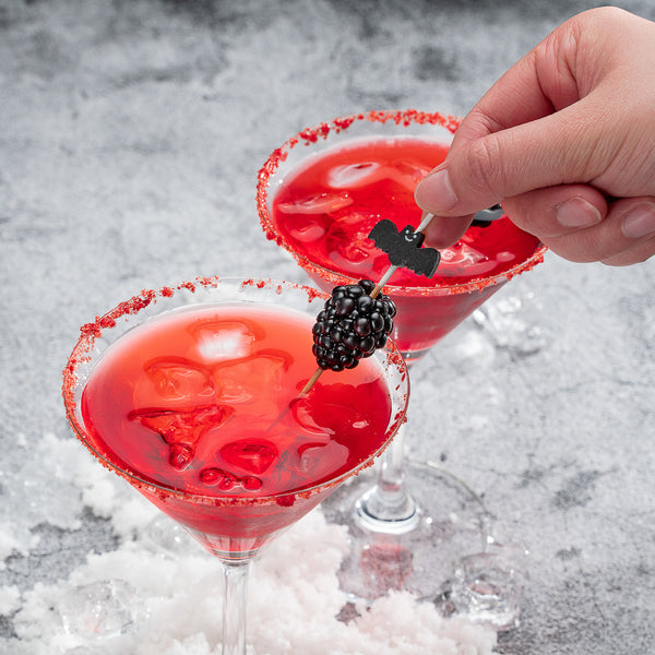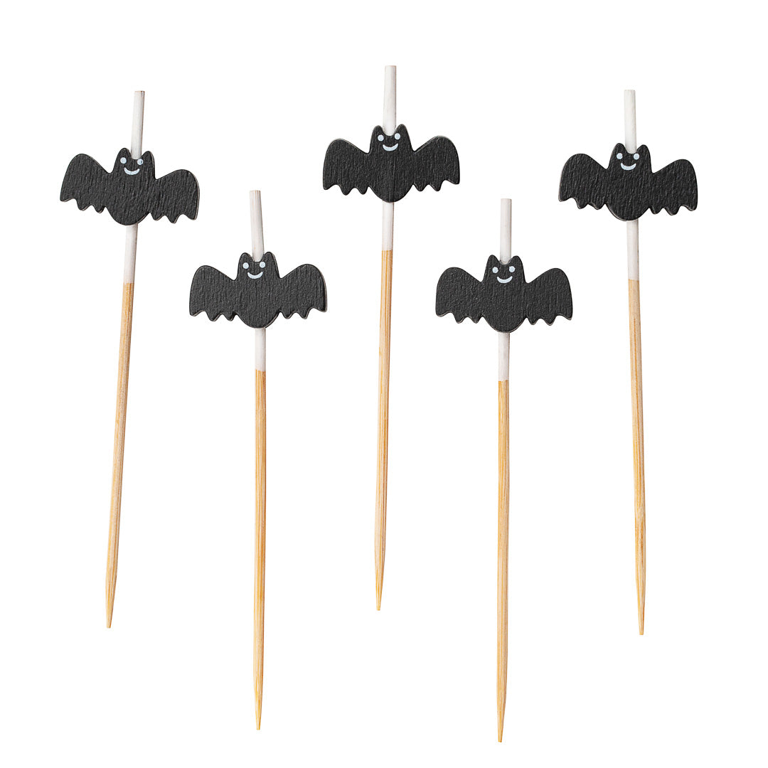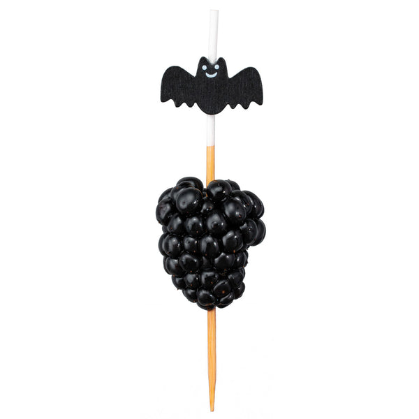 - Black bat detail adds a spooky touch to appetizers and cocktail garnishes