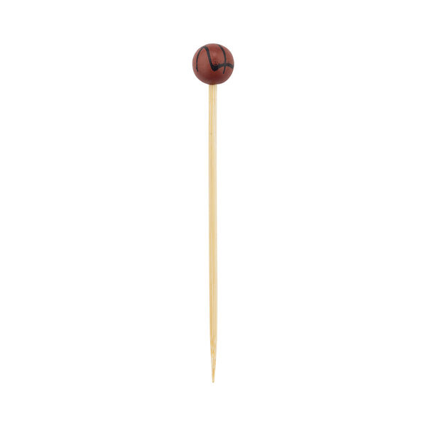 Infuse a fun twist into your appetizer and cocktail creations with our Pixy Brown and Black Bamboo Basketball Skewers. Crafted from robust bamboo, these skewers offer durability and reliability, handling a variety of hot and cold food items with ease. The beautiful brown and black basketball bead of these biodegradable skewers brings a unique touch to your events, making them ideal for sports-themed celebrations, lively parties, or innovative restaurant displays. After use, responsibly dispose of these commercially compostable bamboo picks and enjoy the effortless flair they introduce to any event. Ideal for serving delicious appetizers skewering an assortment of fruits, cheeses, or meats, these 4-inch basketball skewers add an entertaining element to any function. Sold in a 1,000 count box.