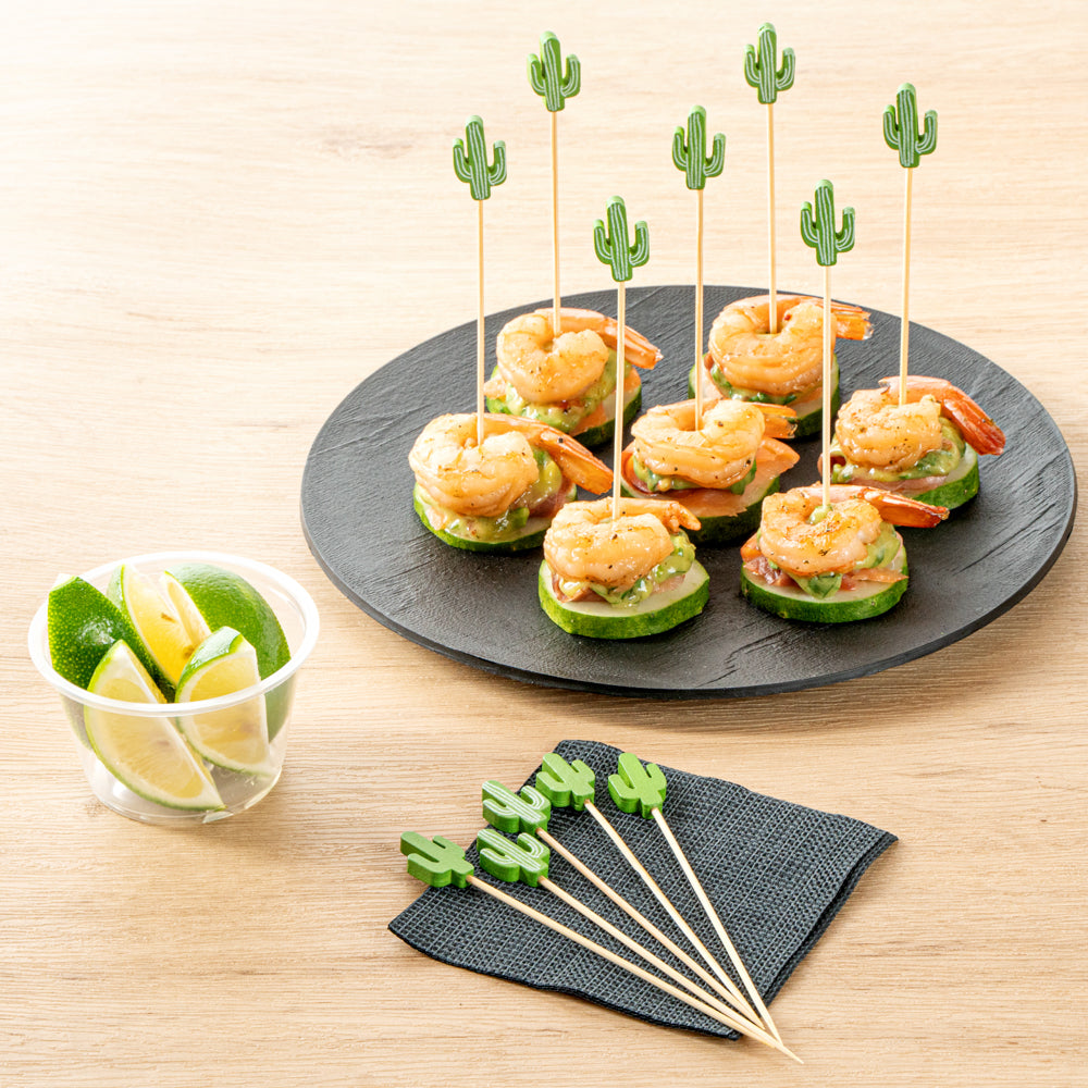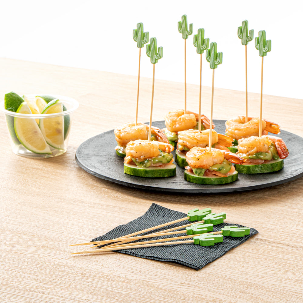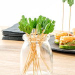 Elevate your presentation with vibrant, eco-friendly flair. Desert-Inspired Pixy Bamboo Cocktail Picks transform ordinary appetizers and garnishes with their distinctive cactus design, enhancing visual appeal at any event. Crafted from green bamboo, these cocktail picks are not only biodegradable but also cold and hot food friendly, making them the ideal bamboo cocktail picks for versatile use. The sharp end of these appetizer skewers effortlessly pierces through meats, cheeses, and fruits, streamlining preparation and service times. Meanwhile, their splinter-free surface guarantees safe handling, protecting staff during busy service hours. Measuring 4.7 inches in length, these cactus cocktail sticks bring a touch of desert-inspired elegance to your culinary creations, while being commercially compostable aligns with sustainable practices. Stock up now and ensure both style and safety in your foodservice operations. Sold in a 100 count box.