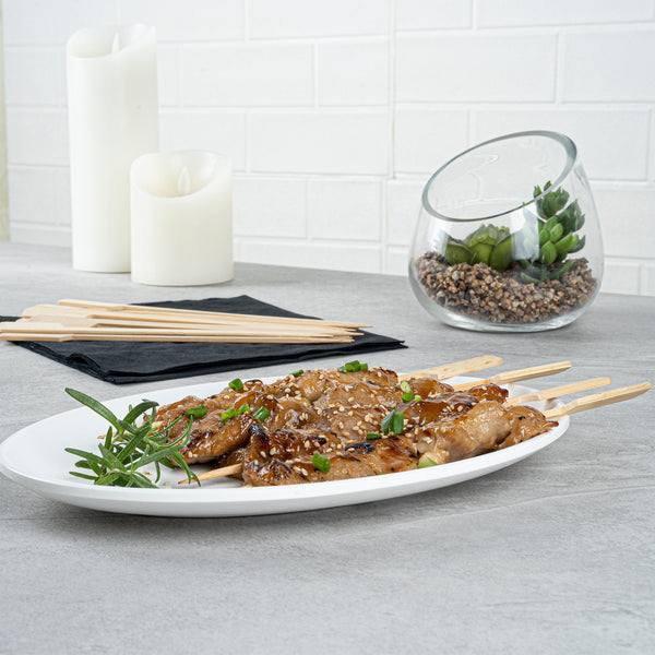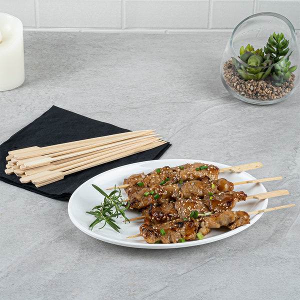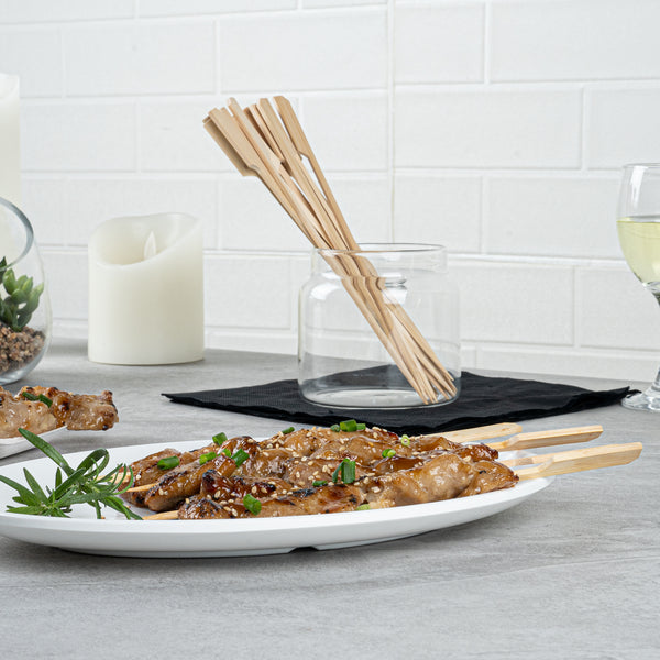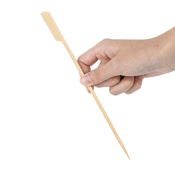 Keep hors d'oeuvres and desserts neatly organized with our Pixy Natural Shaved Bamboo Paddle Skewers. These food skewers feature a paddle design that provides you with an easy way to mark dishes and display them on platters or pick stands. Constructed from durable bamboo, these disposable skewers are naturally splinter-free, which allows customers to comfortably enjoy dishes. These appetizer skewers have a sharp point that allows you to pierce through fruits, vegetables, or meats. For enjoying hors d'oeuvres and candied fruits, these bamboo food picks are conveniently suitable for hot and cold foods. These food picks are crafted from bamboo, ensuring they are biodegradable and suitable for commercial composting. Measuring 8.25 inches long, these bamboo paddles provide an eco-friendly way to serve steak or fruit kebabs at your foodservice establishment. Shipped in a 1,000 count box.