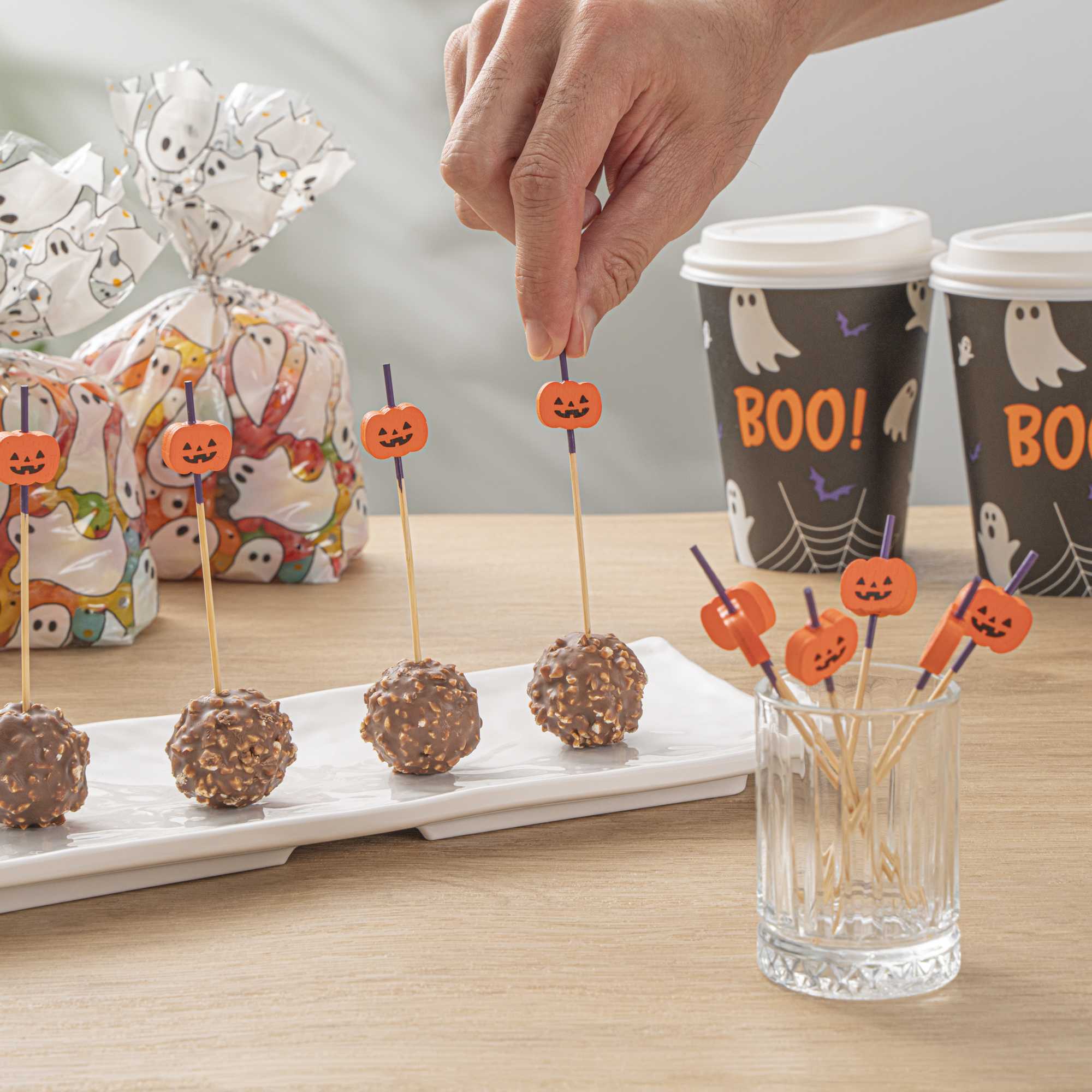• Jack-O-lantern design adds a spooky touch to your appetizers and cocktail garnishes