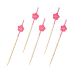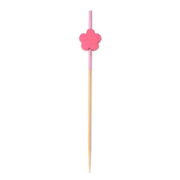 Bring a floral look to cupcakes or assorted cheeses using our Pixy Pink Bamboo Flower Skewers. Made from high-quality bamboo, these wooden skewers are break-resistant to hold the weight of appetizers or desserts without snapping. Featuring a beautiful pink flower, these decorative food picks add a stylish touch to foods and match the decor at themed events. The pointed end of these wooden skewers is designed to easily quick through all kinds of foods. To quickly cleanup after use, these skewers are disposable. These wooden skewers measure 3.5 inches in length. Sold in a 1000 count box.