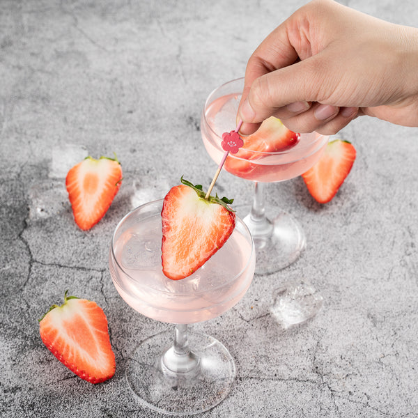 - Pink flower accent adds style to appetizers and cocktail garnishes