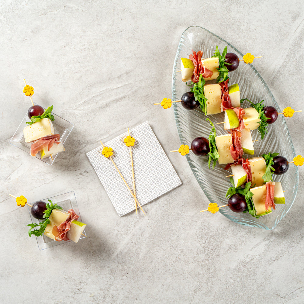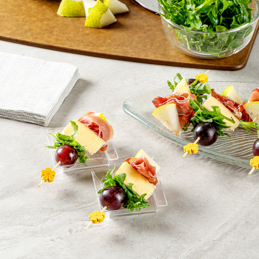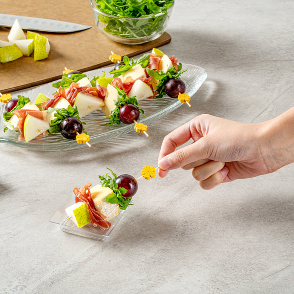 - Sharp end easily pierces through fruits, cheeses, and meats