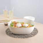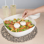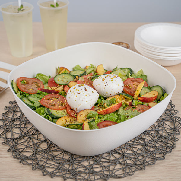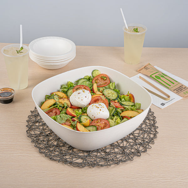 Improve your dining experience with our Pulp Safe Modular No PFAS Added 190-ounce White Sugarcane / Bagasse Bowls. These large-sized, modular bowls are made without any added PFAS, ensuring a reliable and wholesome food experience. The minimalist yet chic design of these sugarcane bowls adds a touch of refinement, destined to heighten the aesthetic of your meals and leave a memorable impression on your guests. Constructed from robust bagasse material, these home compostable white bowls offer not only a fashion statement but also an ideal way to present an array of dishes. Plus, these single-use bowls are BPI Certified for commercial composting, ensuring they properly break down while minimizing your carbon footprint. These white bagasse bowls are microwavable, allowing for easy reheating of food items. Measuring 11.75 in diameter by 4 inches in height, these biodegradable white bowls can accommodate up to 190 ounces and are ideally sized for serving diverse, larger servings of dishes. Sold in a 100 count box. This item will only degrade outside of the traditional solid waste stream.
