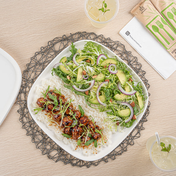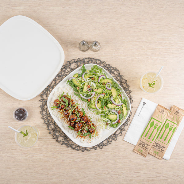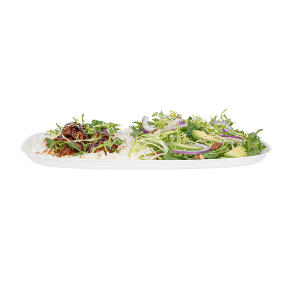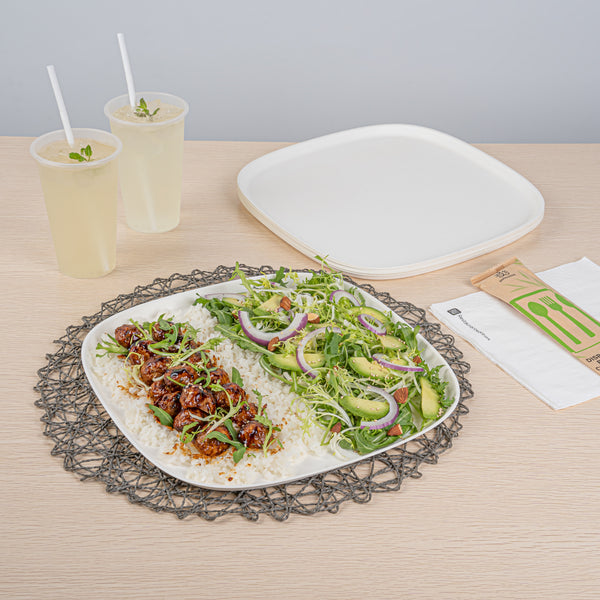 • Natural sugarcane fibers provide an eco-friendly way to serve hot or cold dishes