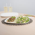 Enhance your culinary events with our Pulp Safe Modular No PFAS Added White Sugarcane / Bagasse Plates. These modular plates are devoid of added PFAS, ensuring reliable dining. The clean and modern design of these sugarcane plates augments the visual appeal of your dishes, leaving a lasting impression on your guests. Formed from robust bagasse material, these home compostable modular white plates offer not only a stylish touch but also a dependable platform for serving a range of foods. Plus, they are BPI Certified for commercial composting, ensuring they properly break down and minimize your carbon footprint. These white bagasse plates are microwavable, allowing for the easy reheating of food when needed. Measuring 11.75 inches in diameter, these biodegradable white dinner plates offer ample space for serving a host of dishes. Sold in a 25 count box. This item will only degrade outside of the traditional solid waste stream.