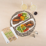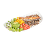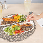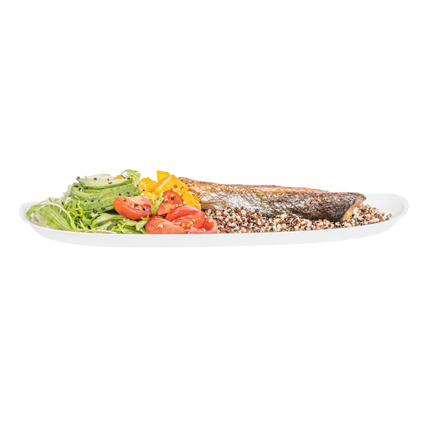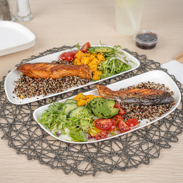 Elevate your food service with our Pulp Safe Modular No PFAS Added White Sugarcane / Bagasse Plates. These home compostable white plates come without any added PFAS, ensuring a reliable dining experience. BPI Certified for commercial composting, these bagasse plates decompose seamlessly in industrial composting facilities without producing harmful waste. The streamlined and contemporary design of these modular sugarcane plates amplifies the visual charm of your culinary offerings, creating a lasting impression on your guests. Created from strong bagasse material, these modular white plates not only add a dash of elegance but also deliver a perfect solution for dishing out a variety of foods. Plus, these home compostable white bagasse plates are microwavable, making the reheating of food a breeze. Measuring 11.75 inches in length by 5.25 inches in width, these sustainable white plates provide sufficient space for serving an assortment of dishes. Sold in a 25 count box. This item will only degrade outside of the traditional solid waste stream.