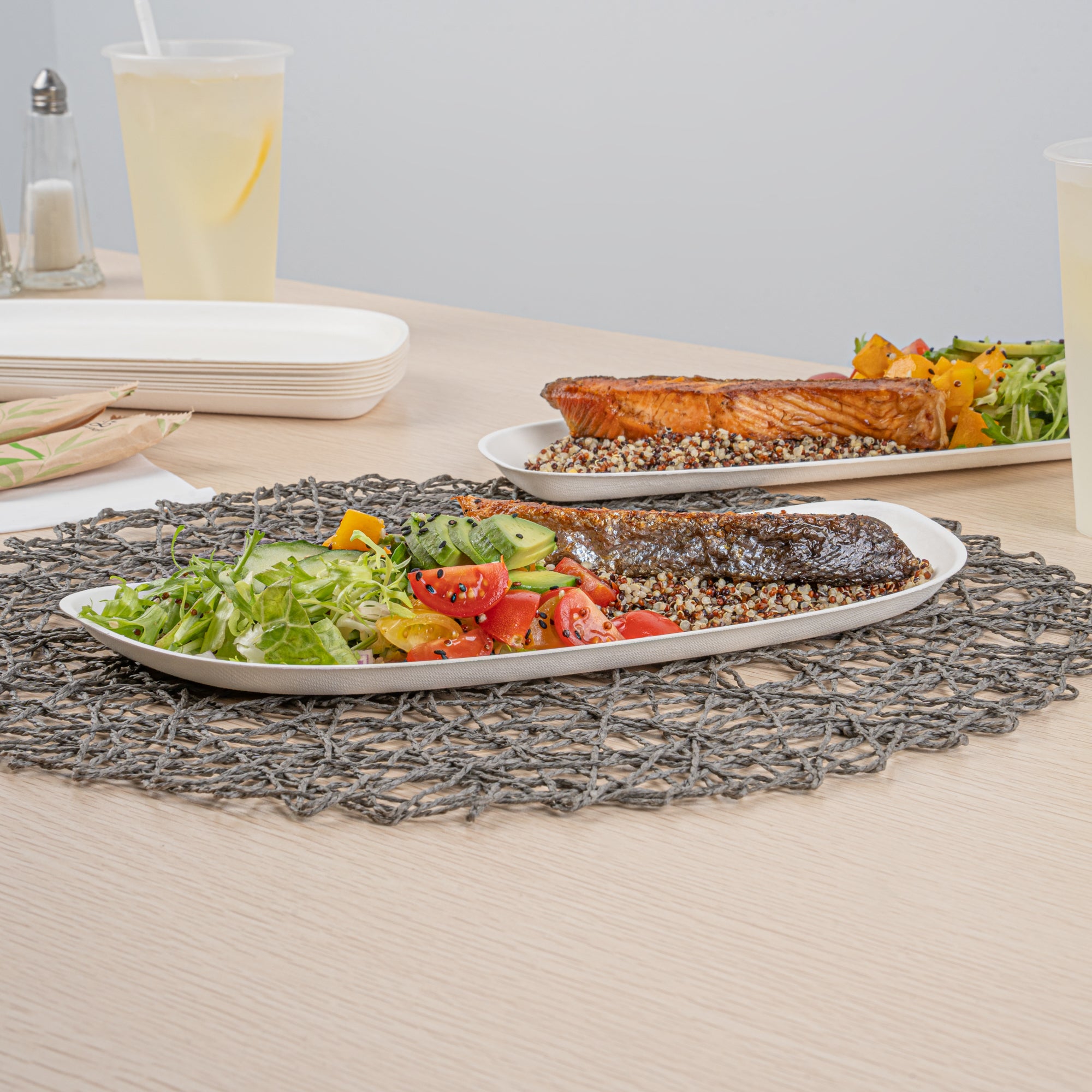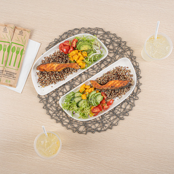 - Natural sugarcane fibers provide an eco-friendly way to serve hot or cold dishes