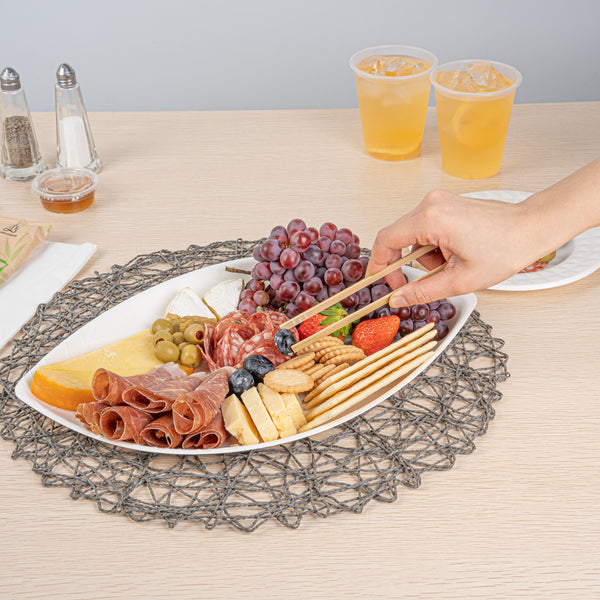 - Natural sugarcane fibers provide an eco-friendly way to serve hot or cold dishes