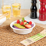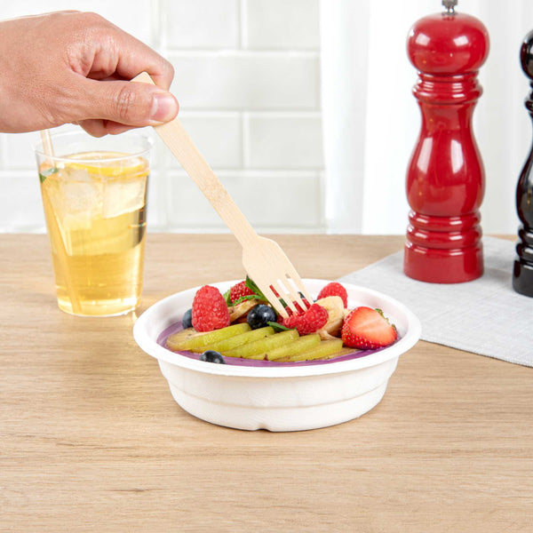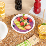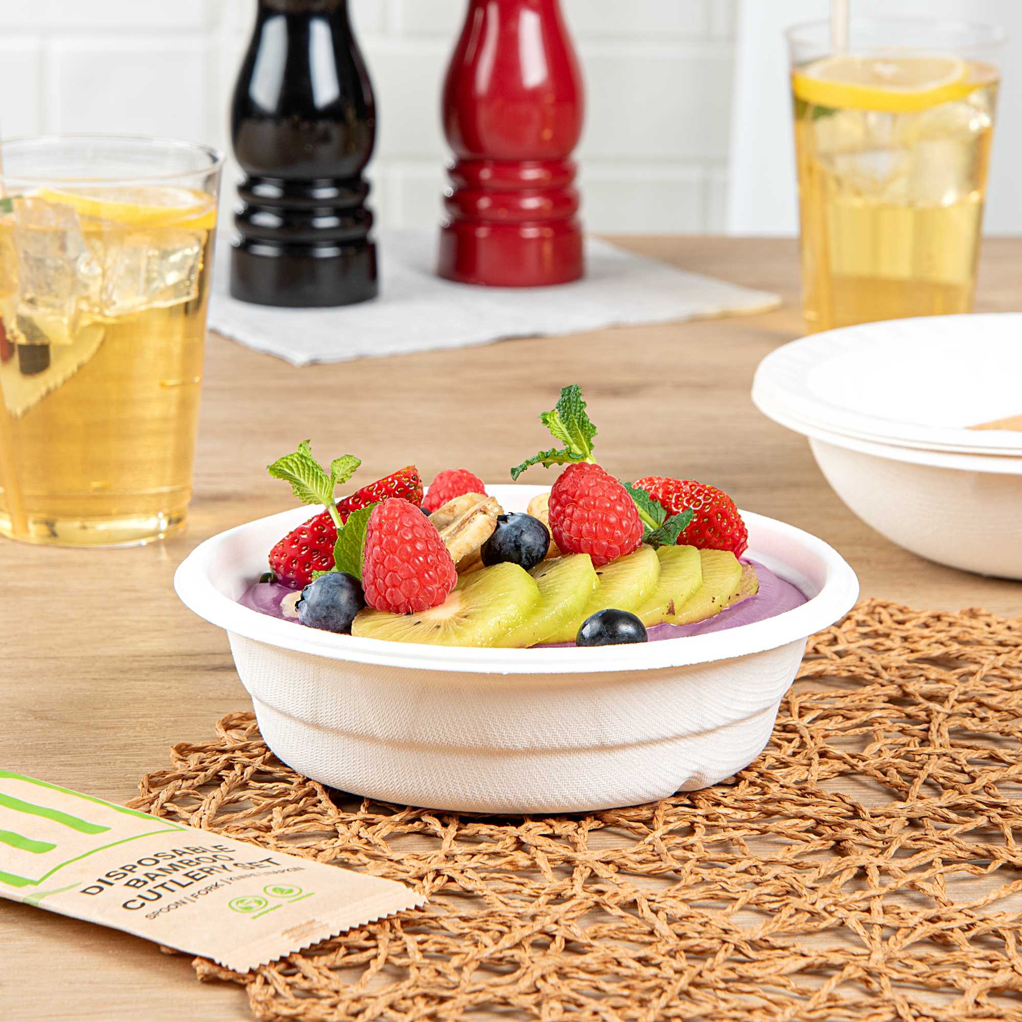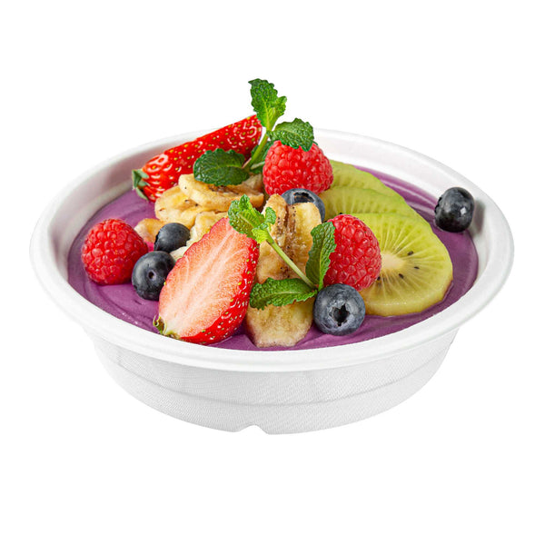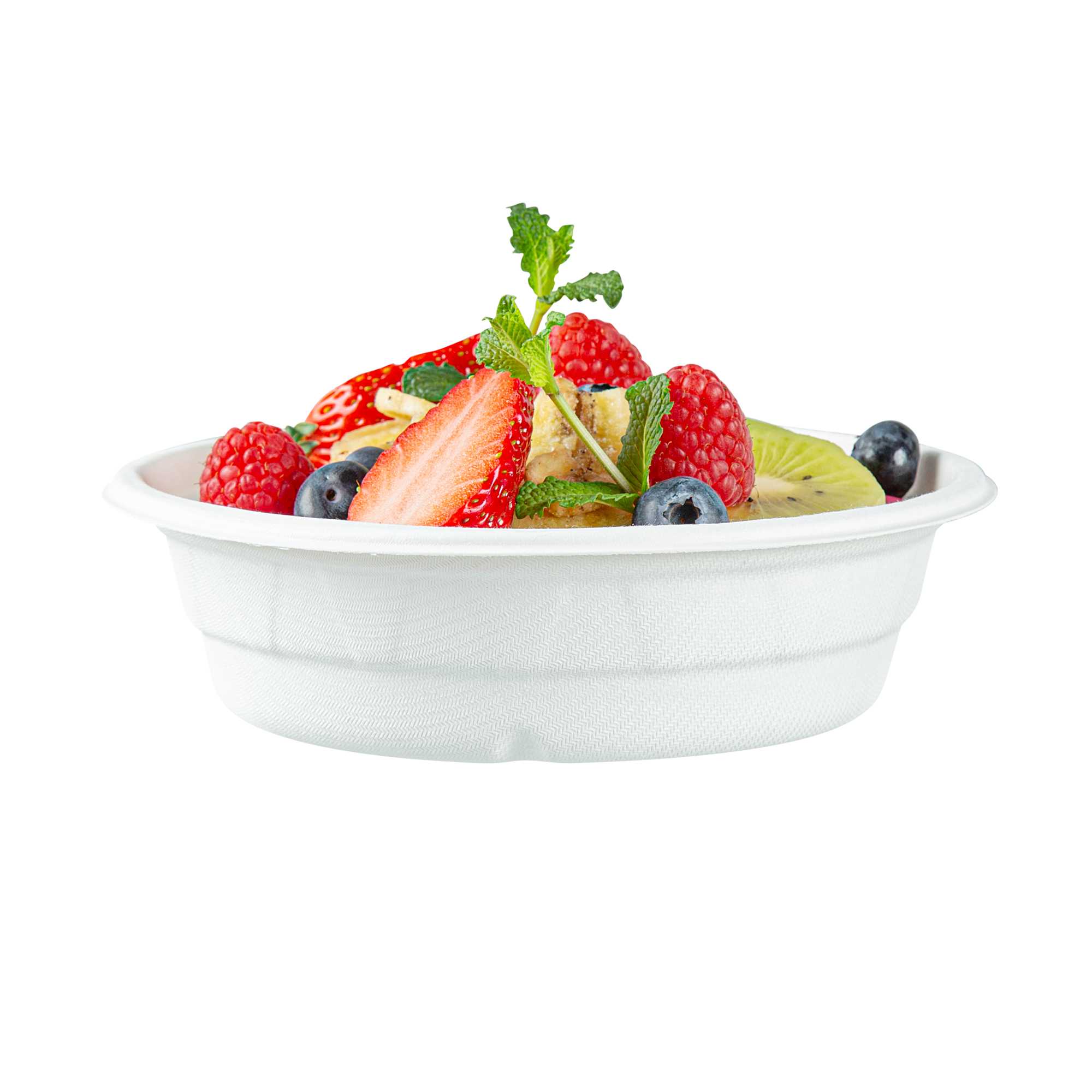 Elevate your food presentation with eco-friendly serving solutions. The Pulp Safe Round Bagasse Bowl combines sustainability and style, featuring a classic bright white color that enhances the look of appetizers and snacks. Made from bagasse, this sugarcane bowl is compostable, supporting environmentally conscious foodservice operations. Its robust construction ensures that it won't break or crack under moderate pressure, making it ideal for containing messy foods. The elegant diamond pattern offers a subtle textured look, adding a refined touch to your plating. This microwave-friendly bowl accommodates both hot and cold dishes effortlessly, allowing for versatile menu options from soups to salads. With dimensions of 6.30 inches in diameter by 1.72 inches in height, this freezer-friendly bowl is perfect for a variety of settings, including restaurants and catering events. Sold in a 400 count box.