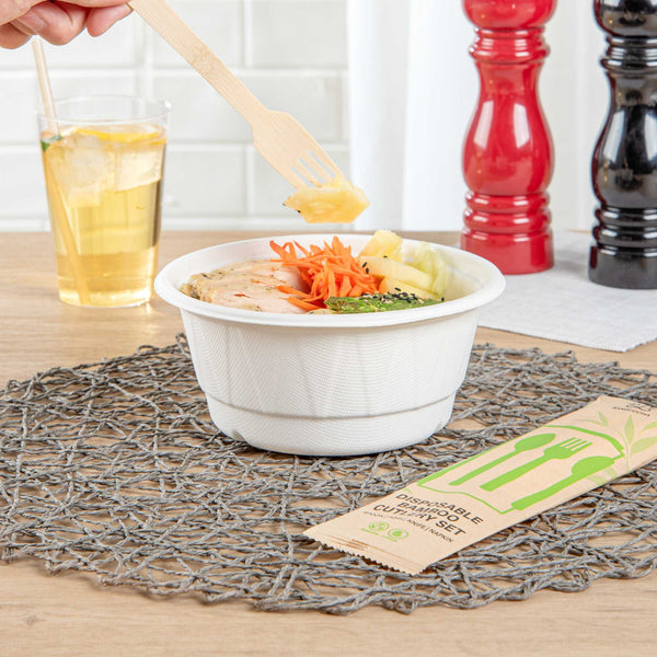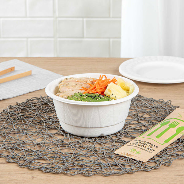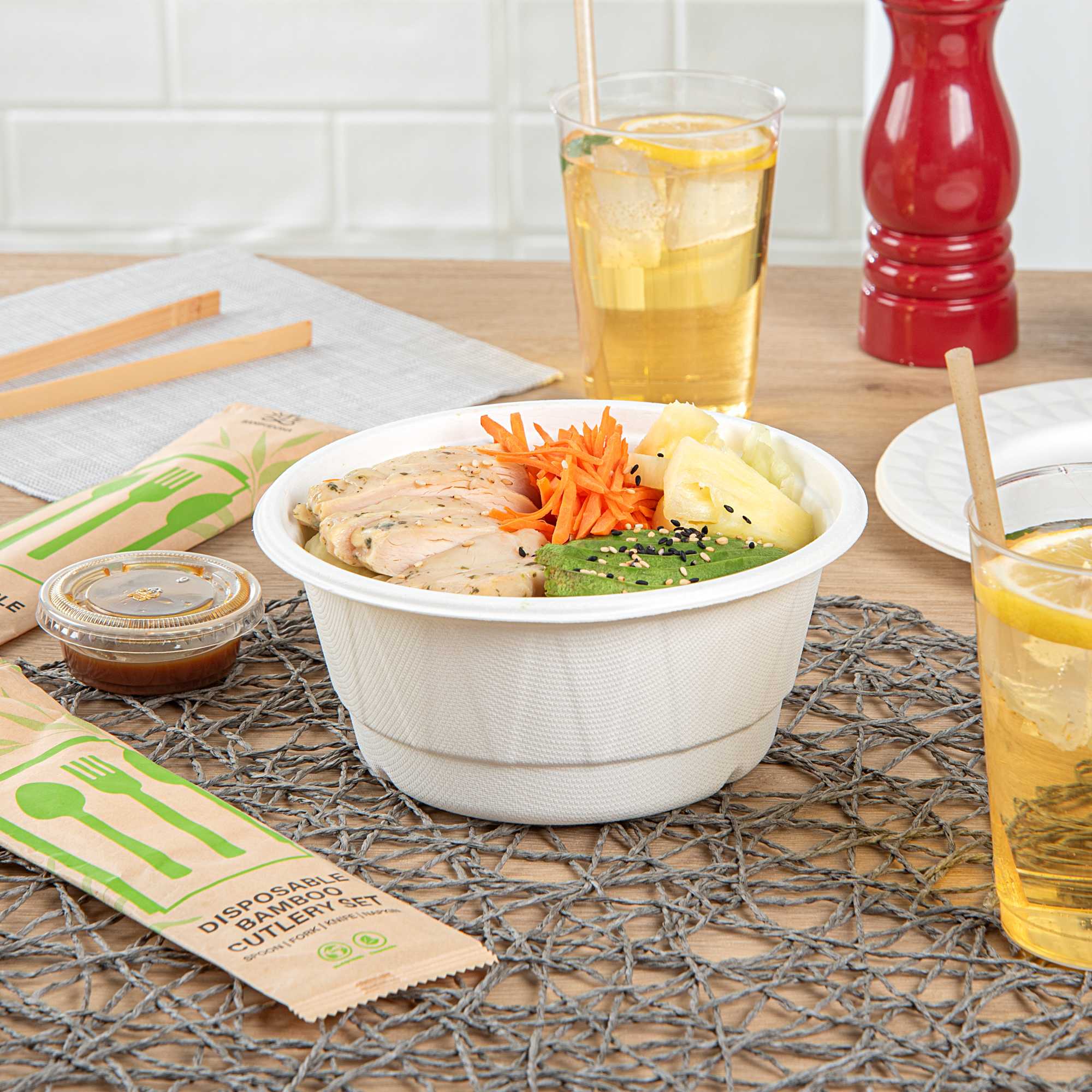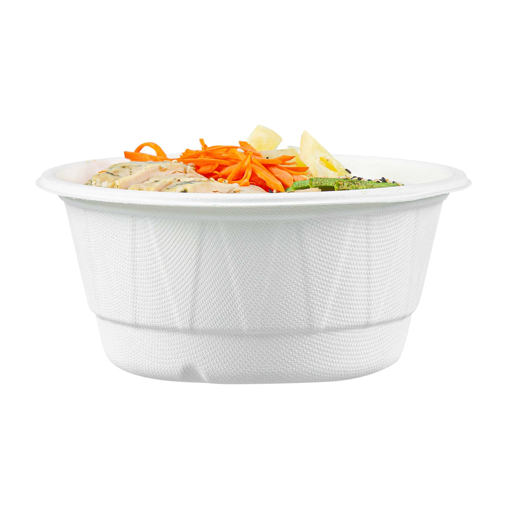 Enhance your eco-friendly service with reliable, compostable bowls. The Pulp Safe 29 oz Round Bagasse Bowl combines a bright white color with a sturdy bagasse construction that won’t break or crack under moderate pressure, making it the ideal bowl for busy foodservice environments. Its can accommodate hearty portions like pasta dishes, providing an appealing presentation that complements any dish. This microwave-friendly bowl is perfect for both hot and cold foods, offering operational flexibility whether you're serving chilled salads or steaming soups. Featuring a diamond pattern, this bowl adds visual interest and a polished finish to plated dishes. The bagasse bowl's greaseproof feature maintains the integrity of your dishes, ensuring that even the messiest foods are contained without leakage. By choosing this compostable design that measures 6.30 inches in diameter by 2.74 inches in height. you support sustainable practices while maintaining high-quality service. Sold in a 400 count box.