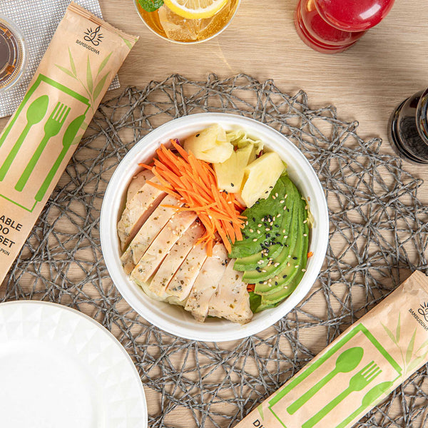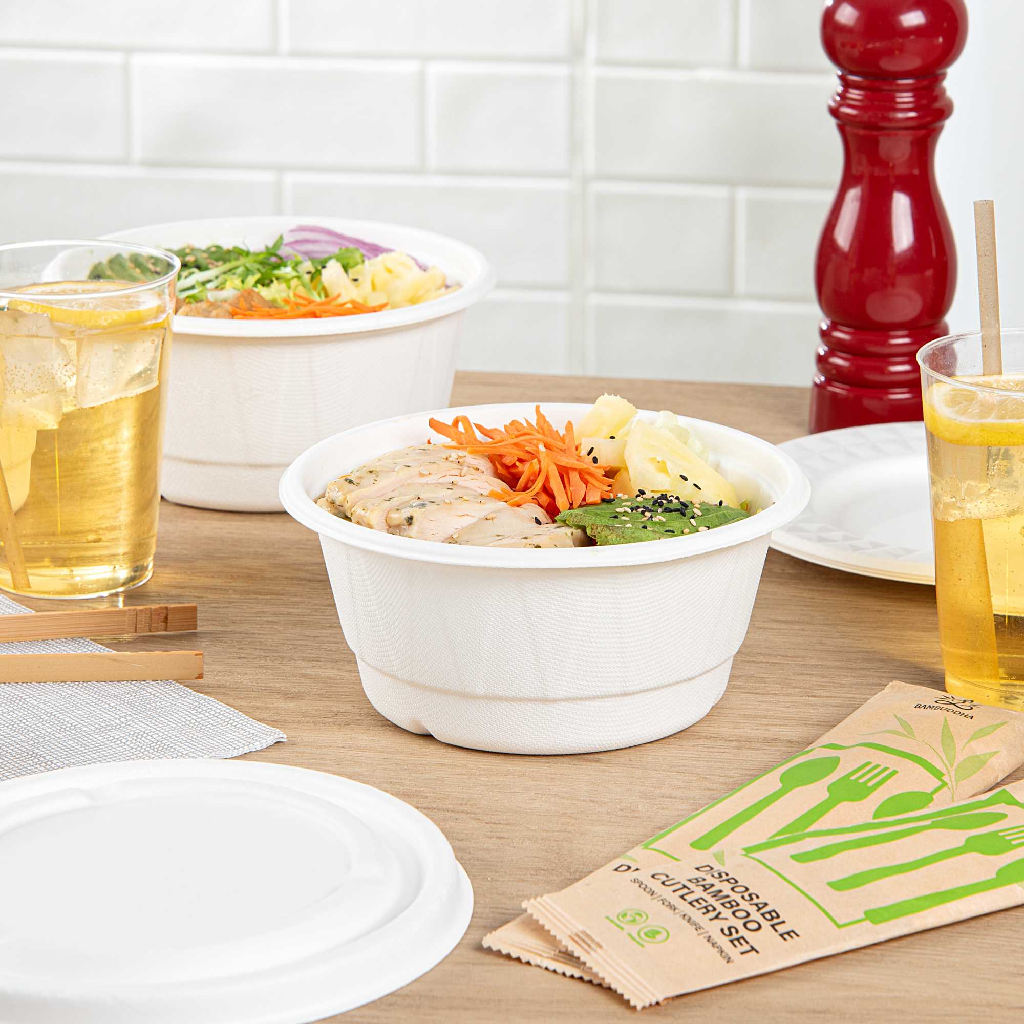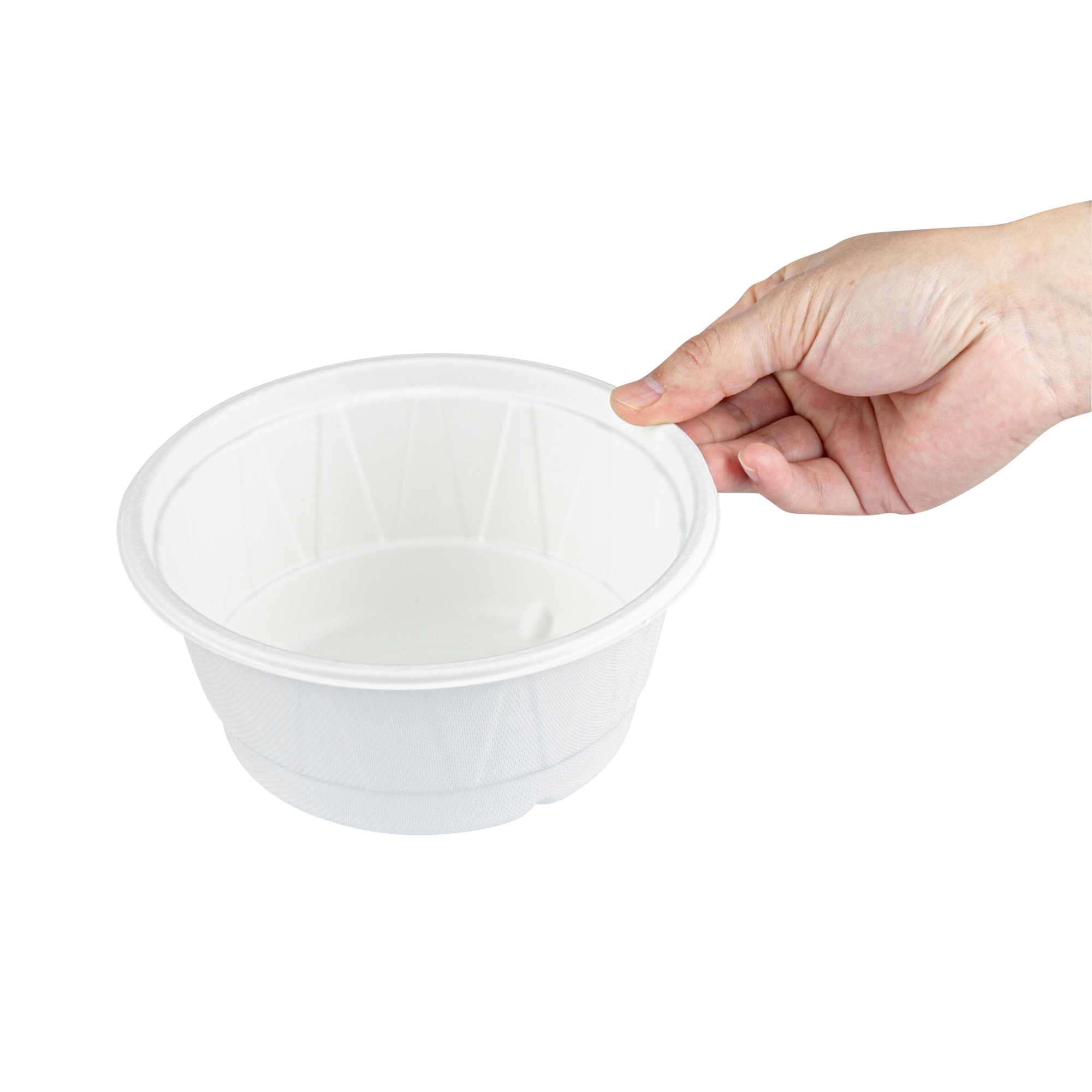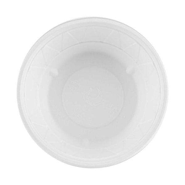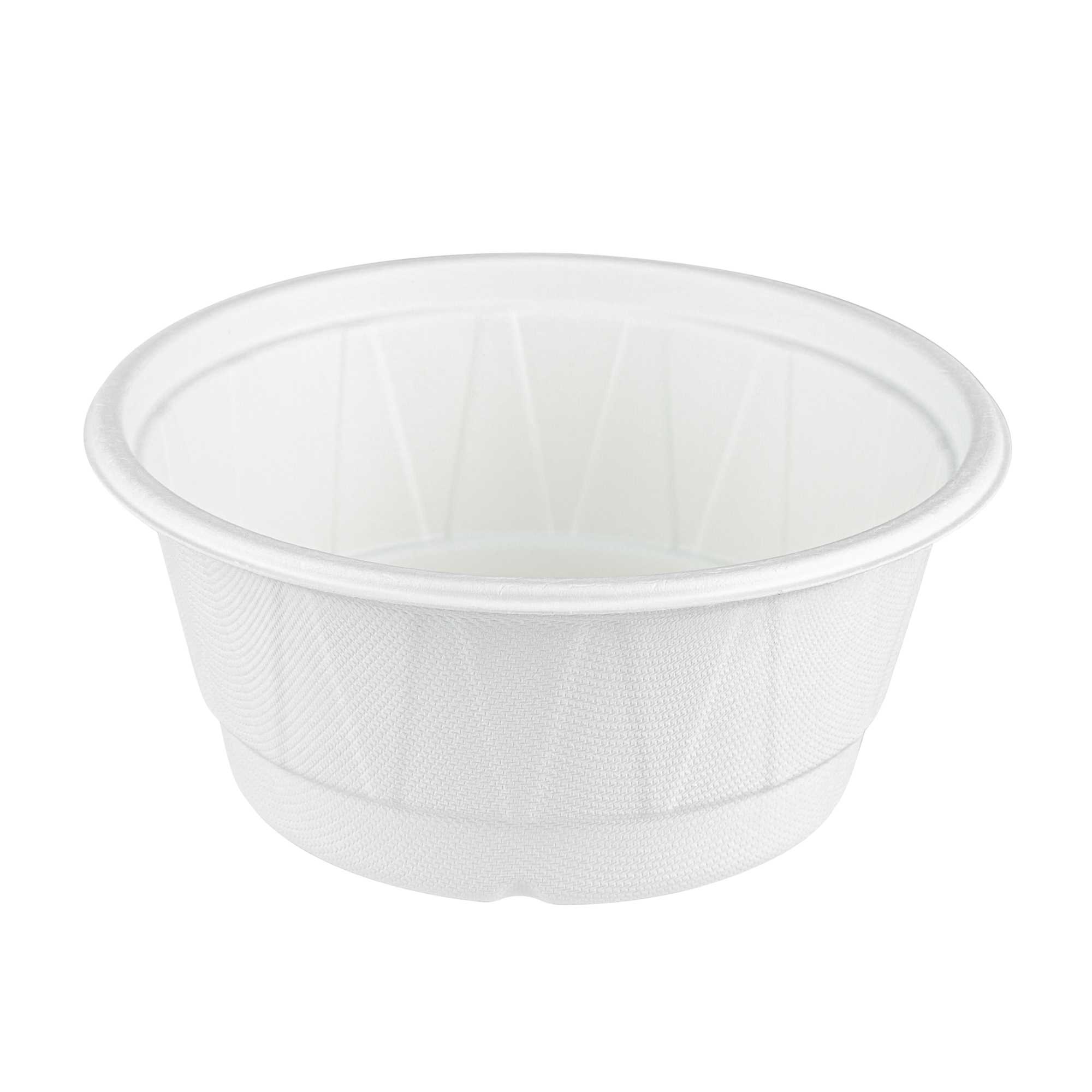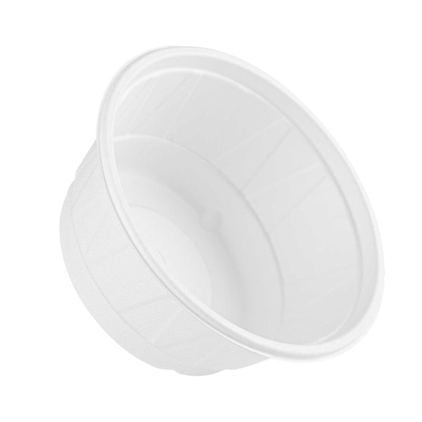 NO PFAS ADDED 29 OZ ROUND WHITE BAGASSE BOWL - DIAMOND PATTERN