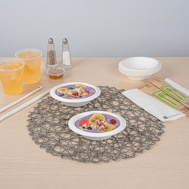Enhance your culinary presentation with our Pulp Safe No PFAS Added 7-ounce Oval White Sugarcane / Bagasse Bowls. These biodegradable oval bowls are fashioned without any added PFAS, ensuring a reliable and satisfying food encounter. The sleek yet upscale design of these sugarcane bowls imparts an aesthetic appeal, set to amplify the grace of your dishes and create a lasting impression on your patrons. Made from sturdy bagasse material, these home compostable white bowls bring not only a touch of elegance but also a practical solution to showcase a variety of dishes. BPI Certified for commercial composting, these sugarcane bowls decompose quickly in industrial compost facilities, leaving no harmful residues behind. These white bagasse bowls are microwavable, facilitating the quick reheating of served food. Measuring 6 inches in length by 5 inches in width and 1.5 inches in height, these disposable white bowls can contain up to 7 ounces and are apt for serving small portions of appetizing dishes. Sold in a 100 count box. This item will only degrade outside of the traditional solid waste stream.