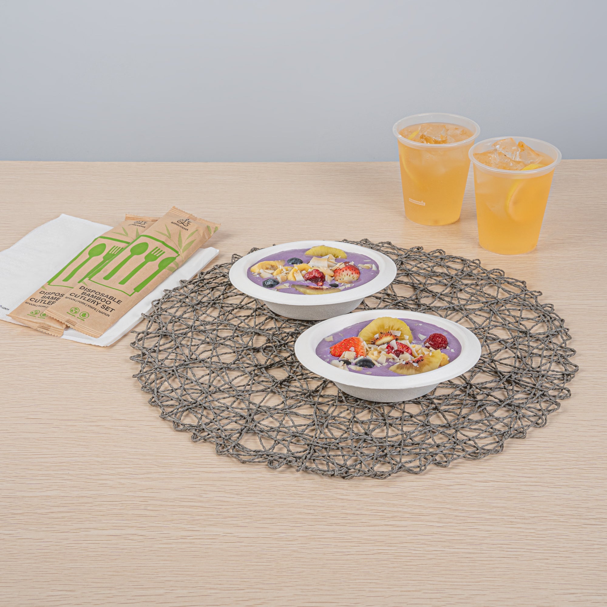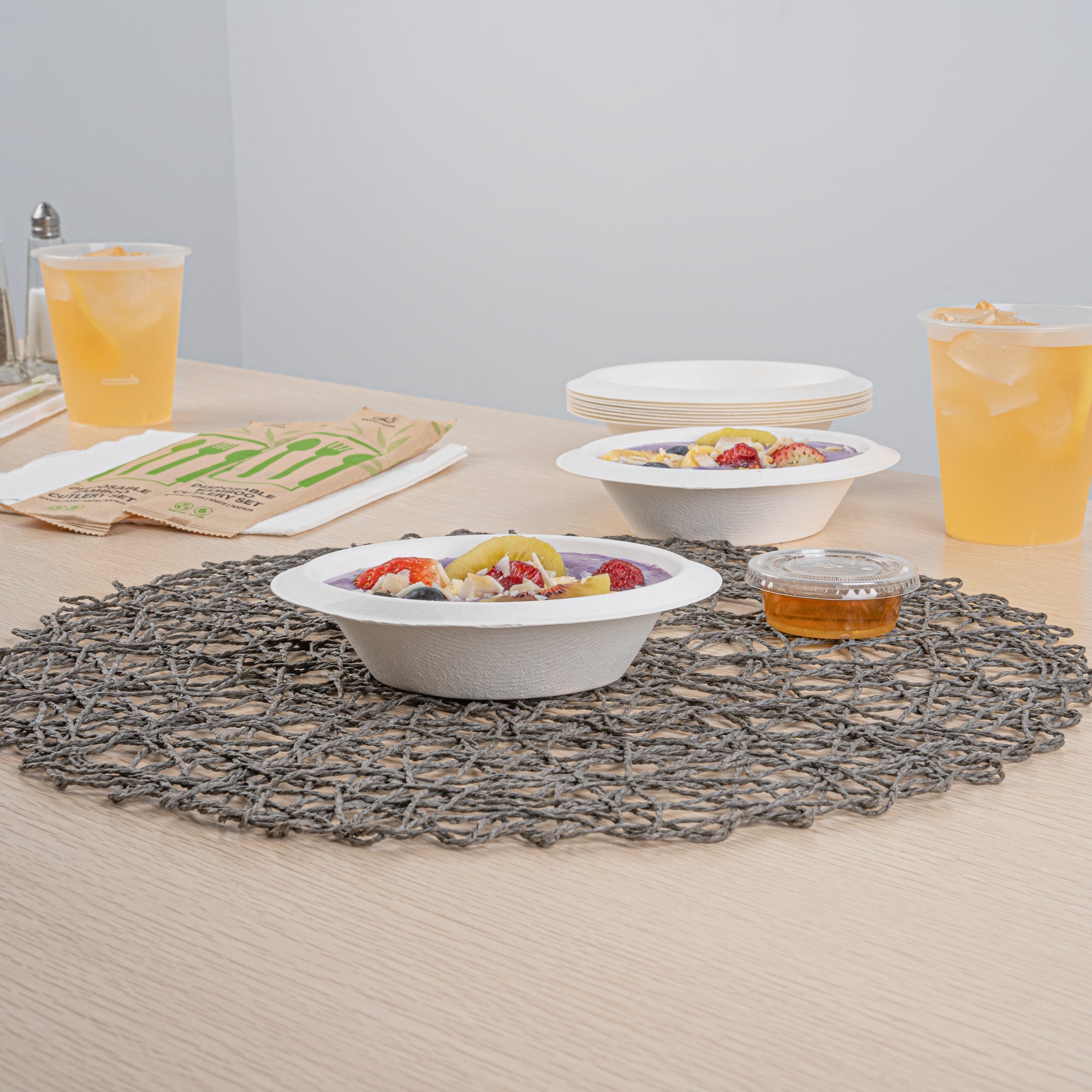 - Natural sugarcane fibers provide an eco-friendly way to serve hot or cold dishes