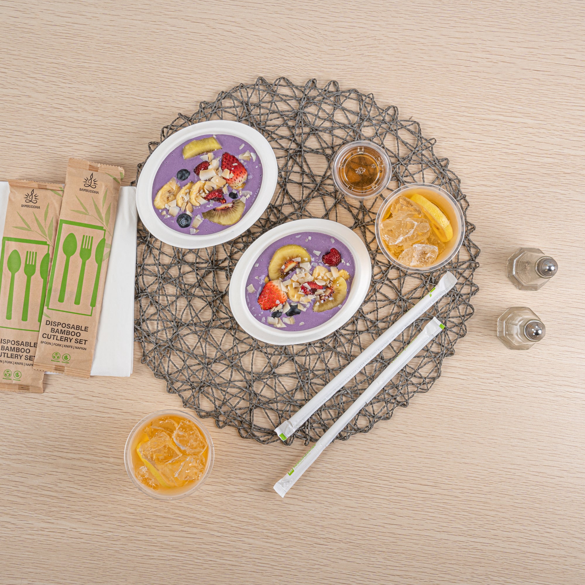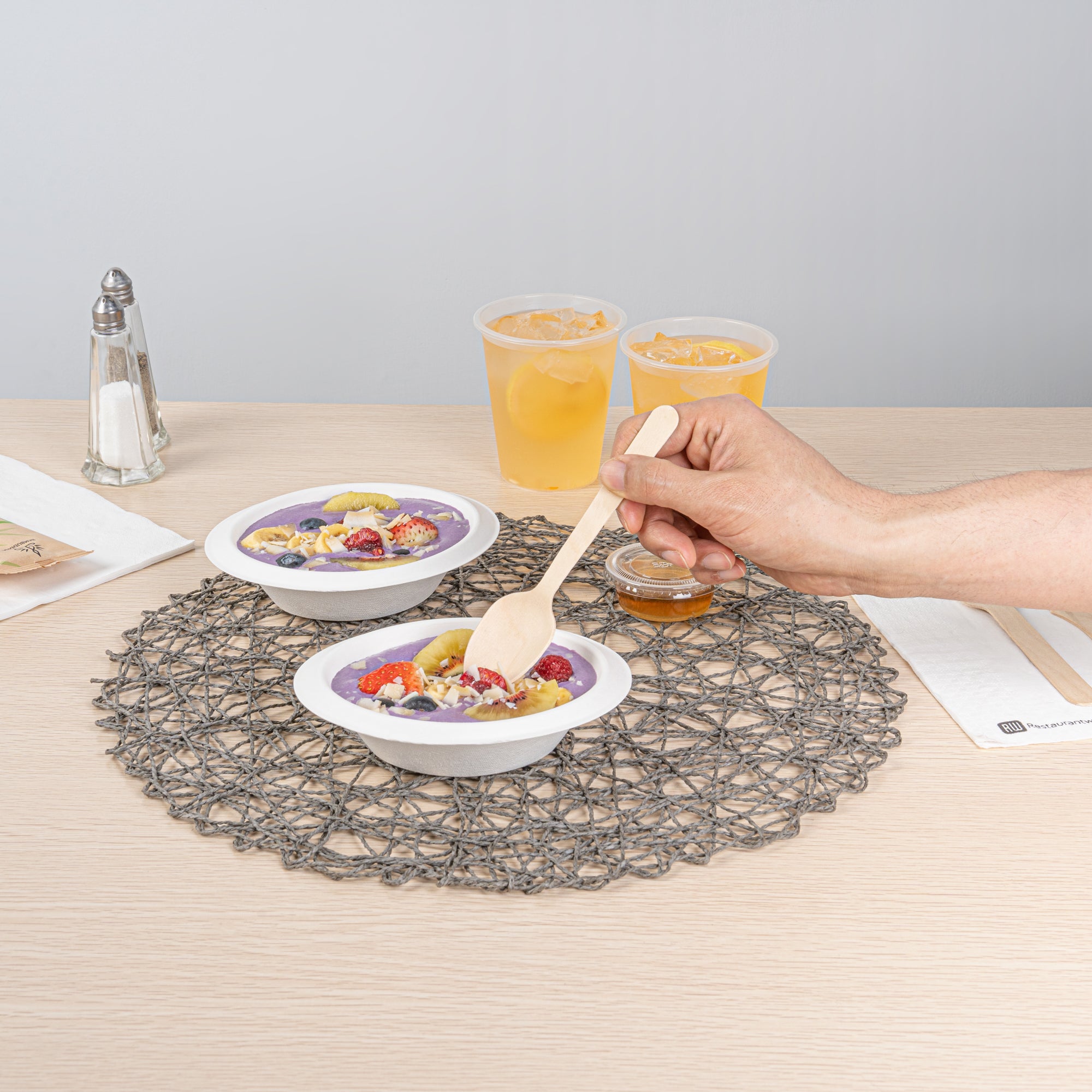 - Natural sugarcane fibers provide an eco-friendly way to serve hot or cold dishes