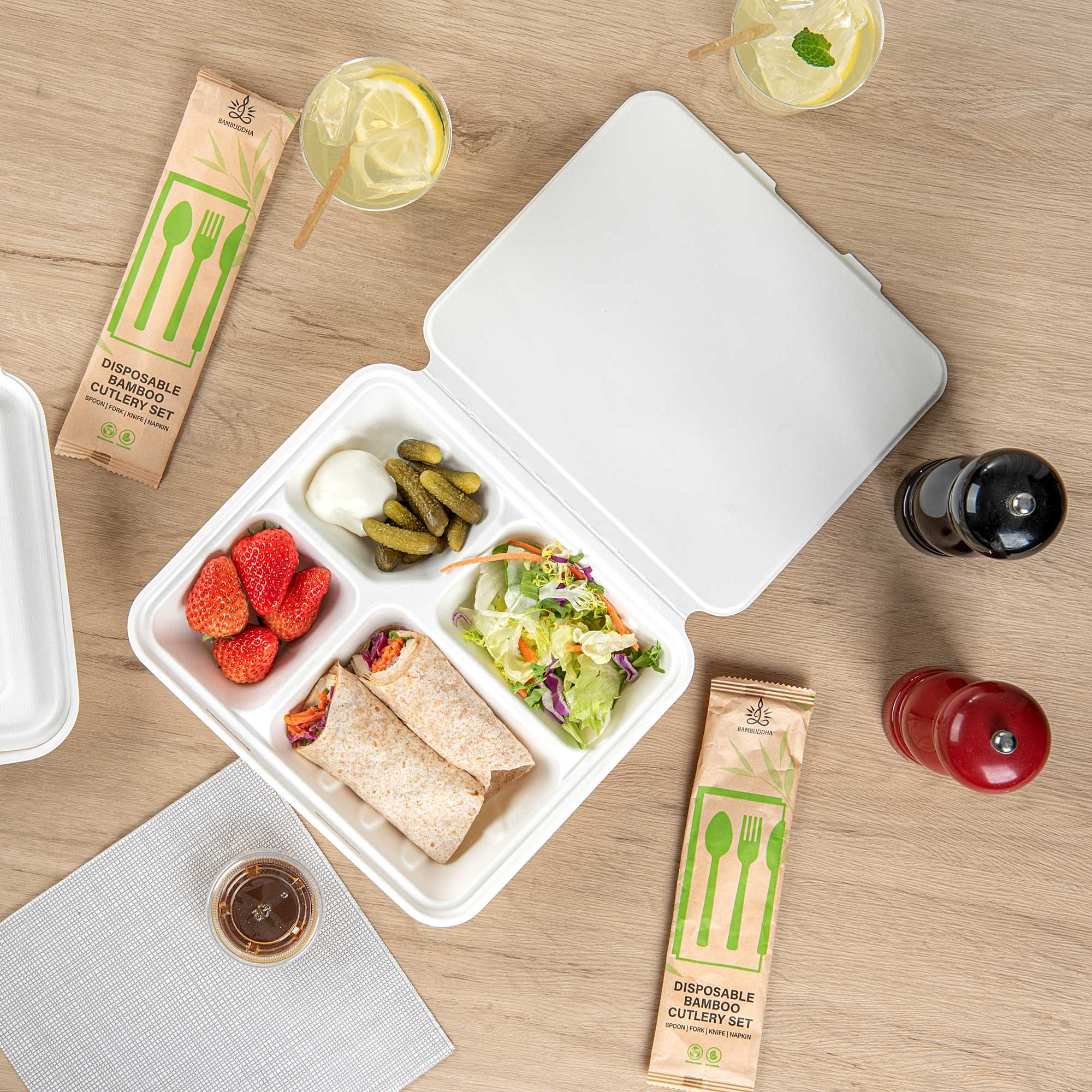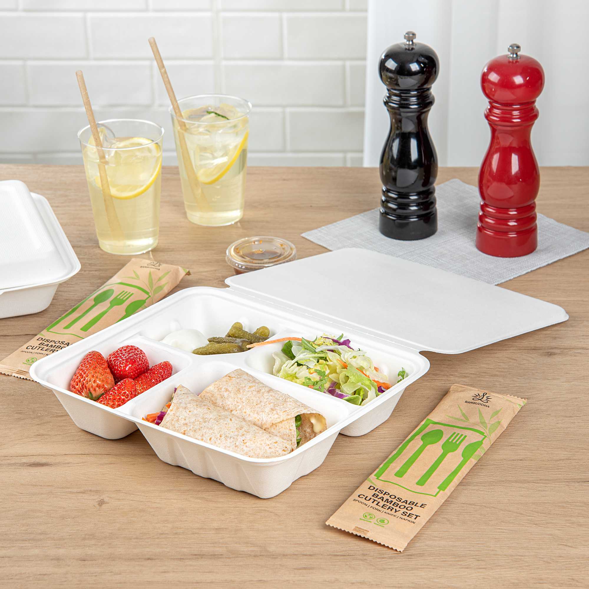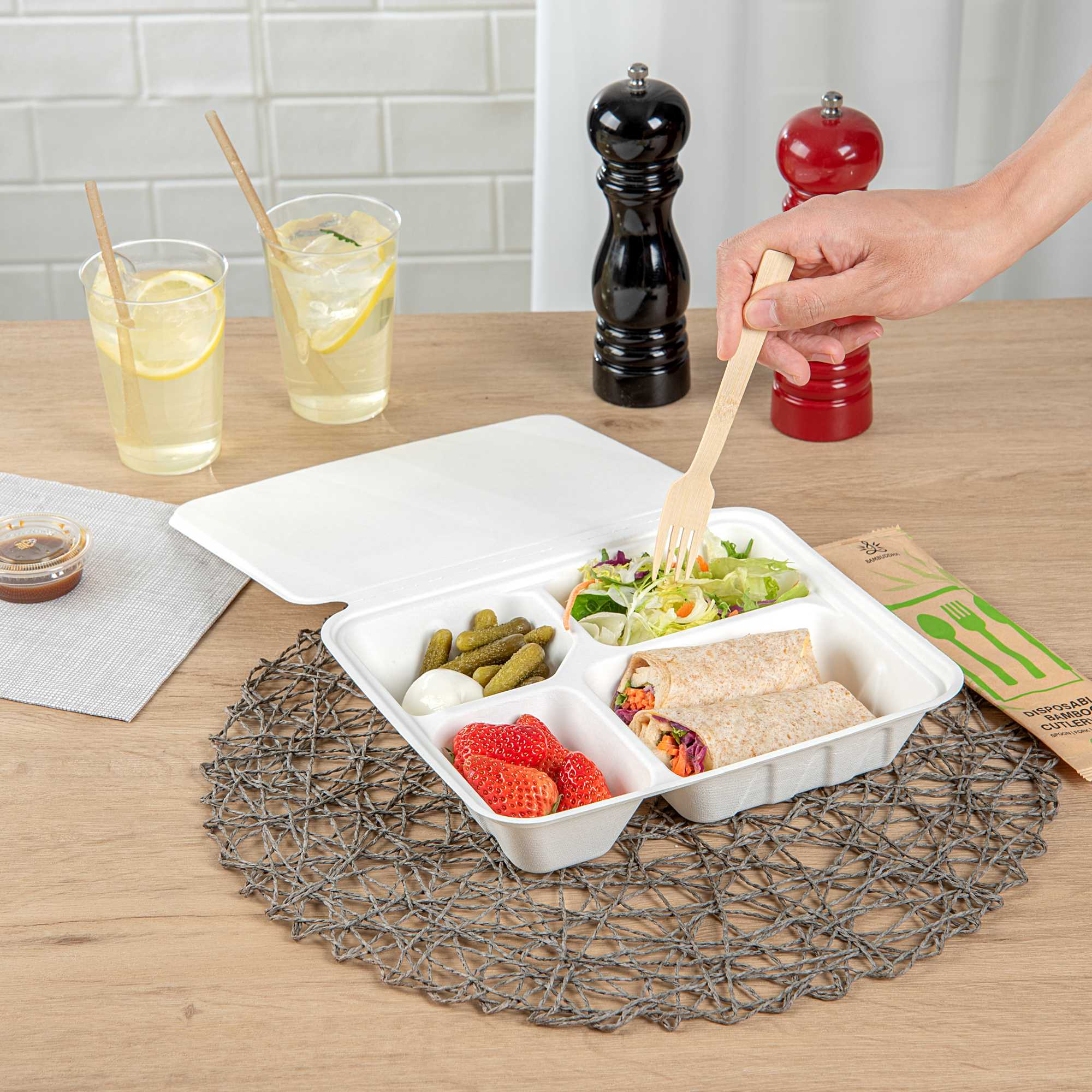 - 4-compartment design separates meal components, maintaining freshness