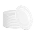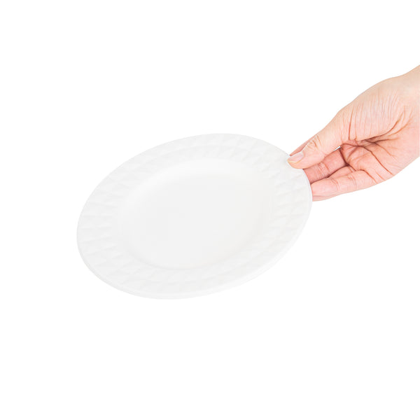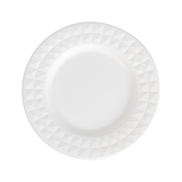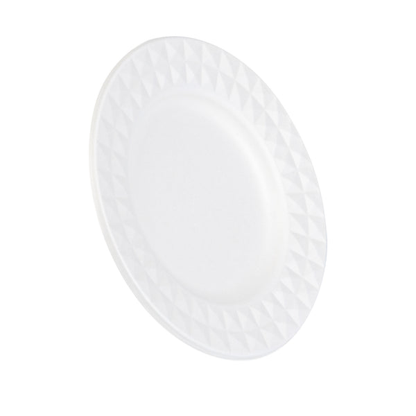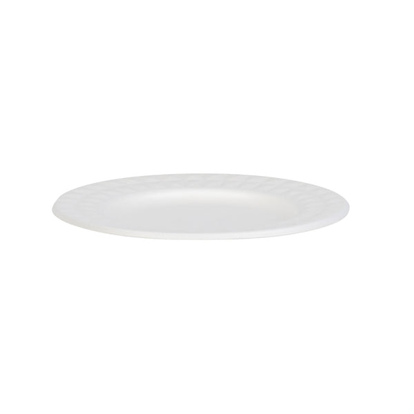 Enhance your culinary occasions with our Pulp Safe No PFAS Added Round White Sugarcane / Bagasse Plates. With no added PFAS, these home compostable round plates assure a secure and enjoyable dining experience while caring for the environment. The distinct diamond rim design of these dinner plates complements the visual appeal of your gourmet dishes and impresses your guests. BPI certified for commercial composting, these plates provide added benefits by supporting eco-friendly waste management practices. Made from sturdy, sustainable bagasse material, these round plates not only exude elegance but also serve as a dependable option for presenting various appetizing foods. Plus, the microwavable white bagasse plates allow for convenient food reheating when needed. Measuring 7 inches in diameter, these sugarcane plates are ideal for presenting a wide range of delectable dishes. Sold in a 100 count box. This item will only degrade outside of the traditional solid waste stream.