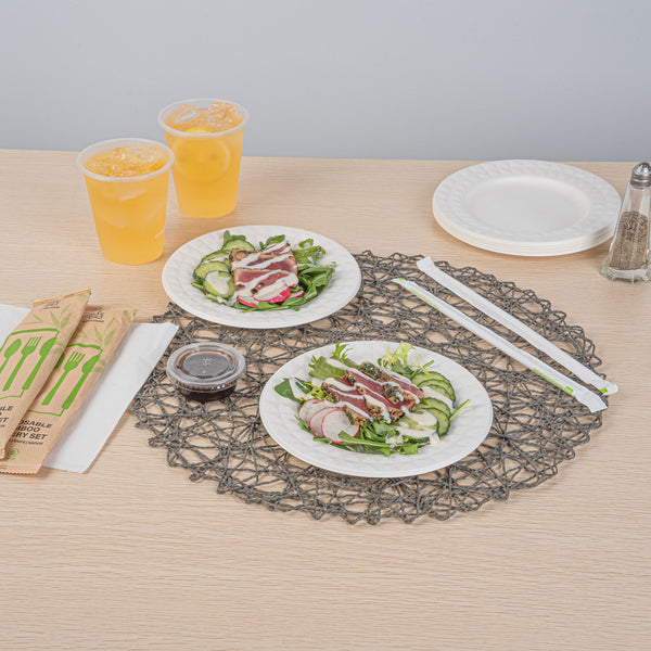 - Natural sugarcane fibers provide an eco-friendly way to serve hot or cold dishes