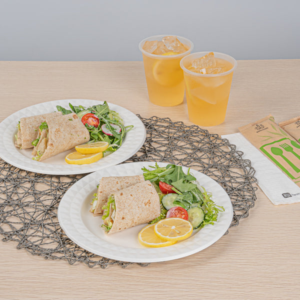- Natural sugarcane fibers provide an eco-friendly way to serve hot or cold dishes
