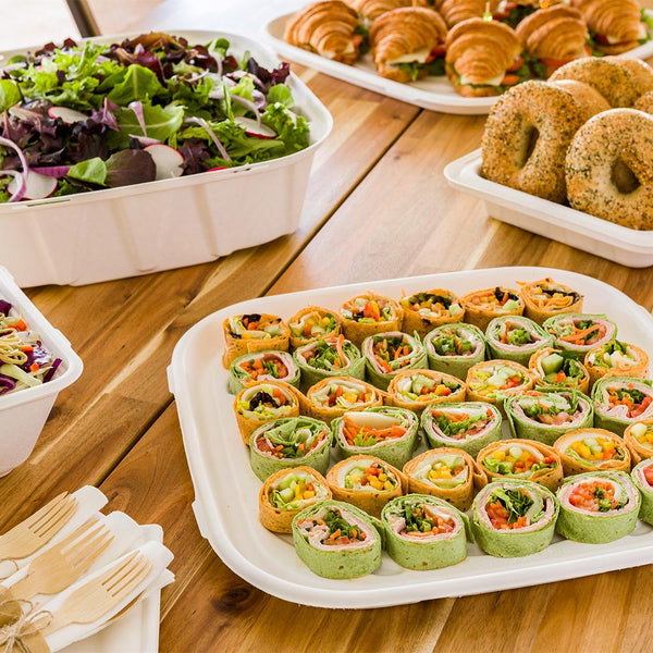 These disposable party trays have no PFAS added to them to help protect you and the environment while meeting state regulations. Sustainably serve dishes!