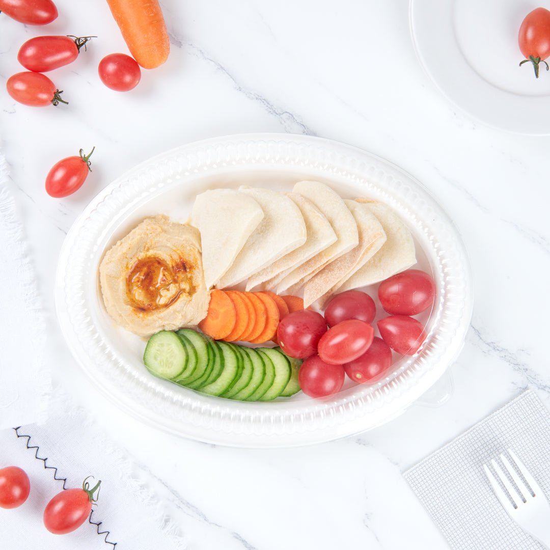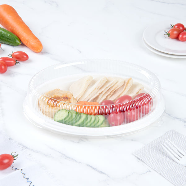 OVAL CLEAR PLASTIC RIPPLE DOME LID - FITS SUGARCANE / BAGASSE PLATE