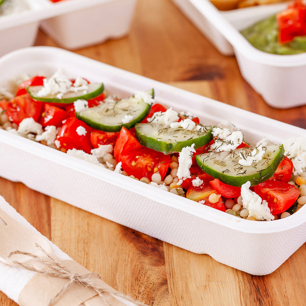 Made from sugarcane fibers, also known as bagasse, these containers are sustainable. Choose from a natural brown finish or a sleek white finish to complement your to-go orders.