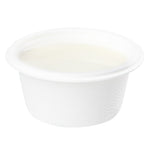 Serve hot and cold condiments alongside finger foods with our Pulp Tek 2-Ounce Round White Bagasse Take Out Portion Cups. Constructed from premium bagasse, naturally repurposed sugarcane fibers, these biodegradable portion cups are commercially compostable to minimize your establishment's carbon footprint and fit the needs of your eco-conscious patrons. These water-resistant portion cups are durable to maintain their exceptional design and prevent leaks when filled with sauces. For a quick and efficient way to heat up condiments or dips before serving, these sugarcane portion cups are microwave-safe. With a rolled rim, these 2-ounce portion cups can be securely sealed with our coordinating portion cup lids for a mess-free way to transport meals with their accompanying sauces. These single-use portion cups feature a white finish that provides the salsas or cheeses served at your foodservice establishment with a classic look. Containing up to 2 ounces, these sauce cups measure 2.5 inches in diameter by 1.25 inches in height. Sold in a 2,000 count box. This item will only degrade outside of the traditional solid waste stream. Portion cup lids (SKU: RWA0942C) are available and sold separately.