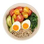 Serve your salads in our Pulp Tek 30-ounce Round Natural Sugarcane / Bagasse To Go Bowls. Crafted from bagasse, the pulp from processed sugarcane, these disposable soup bowls are commercially compostable and biodegradable for a quick and sustainable clean up. Built to withstand the temperatures of hot and cold foods, these bagasse bowls are perfect for serving entrees or desserts. To easily store food in the refrigerator, these pulp bowls are freezable. These round bowls are microwavable to keep your meals hot and ready to enjoy. Great for fried food or saucy dishes, these party bowls are grease-resistant to avoid soaking up oils and making a mess. The natural bagasse finish of these microwavable bowls creates a rustic look to impress your customers. Combine these bowls for hot food with lids to securely seal in meals and avoid spills during transport. Containing up to 30 ounces, these disposable bowls measure 7 inches in diameter and 2.5 inches in height. Sold in a 100 count box. This item will only degrade outside of the traditional solid waste stream. Lids (SKU: RWA1010K and RWA1011C) are available and sold separately.