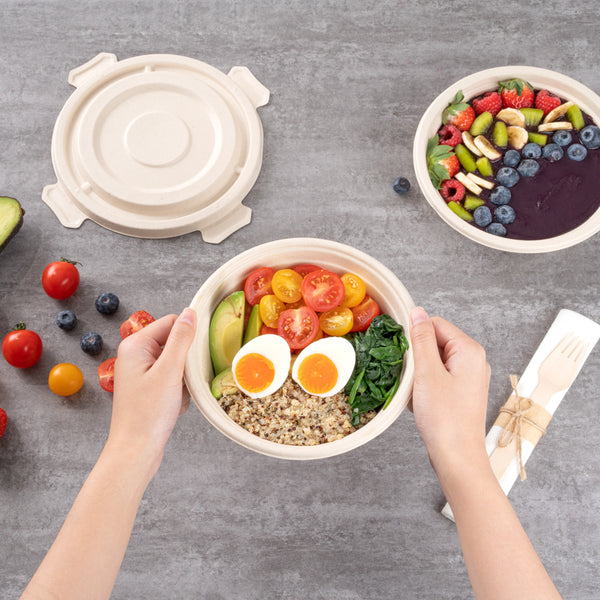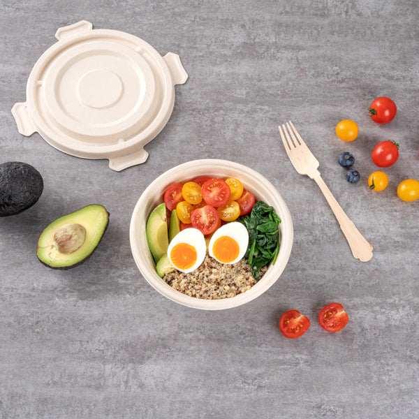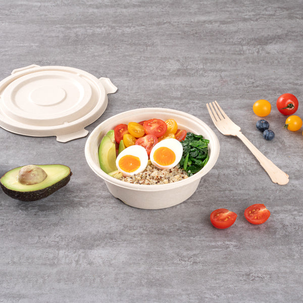 30 OZ ROUND NATURAL SUGARCANE / BAGASSE TO GO BOWL