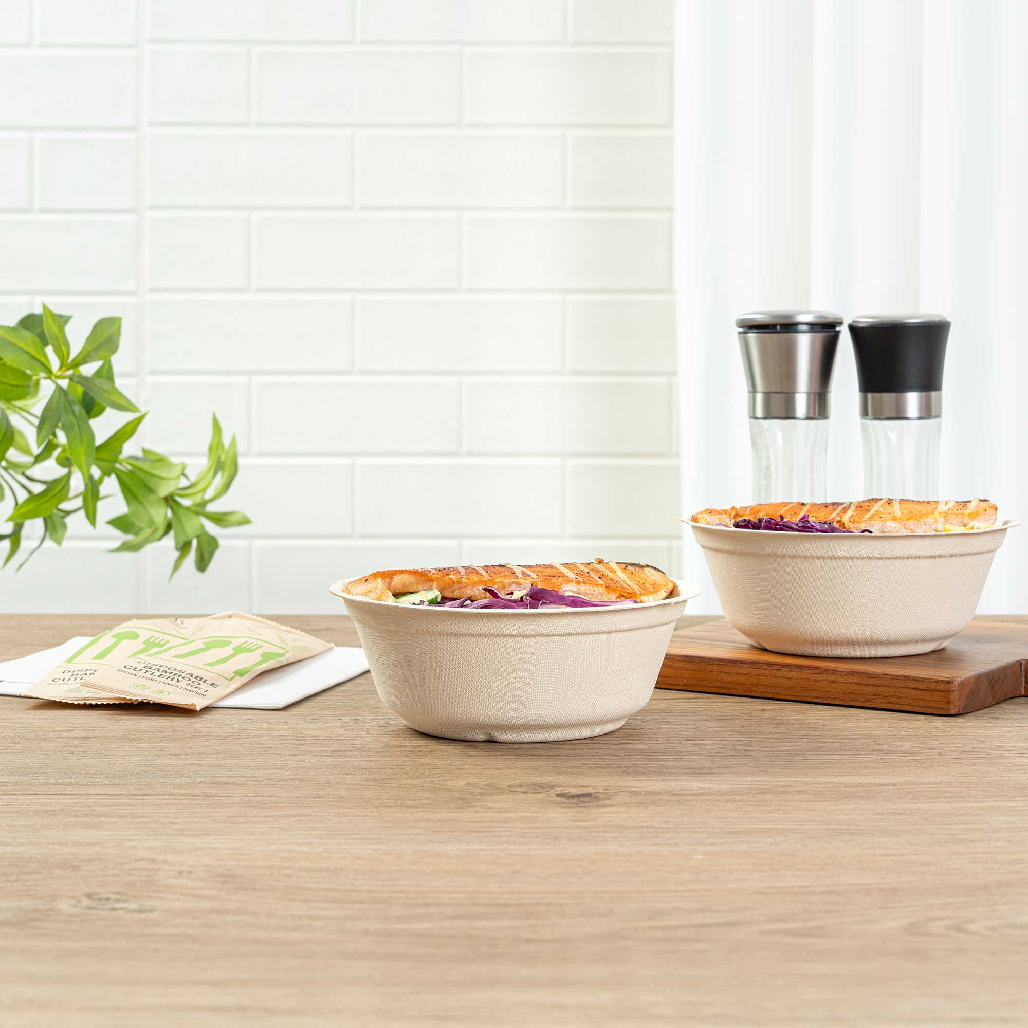 - Sustainable bagasse provides alternative to traditional plastic or styrofoam bowls