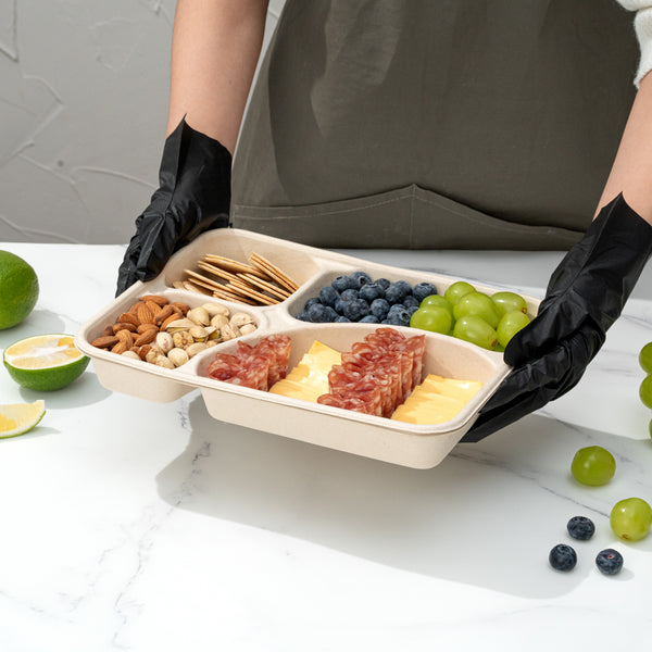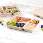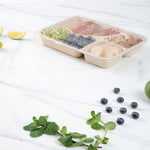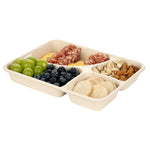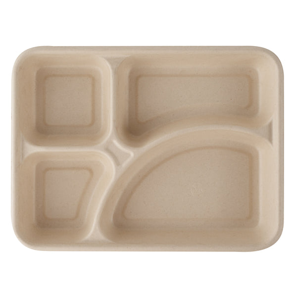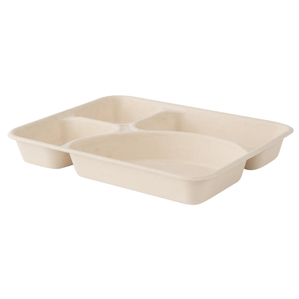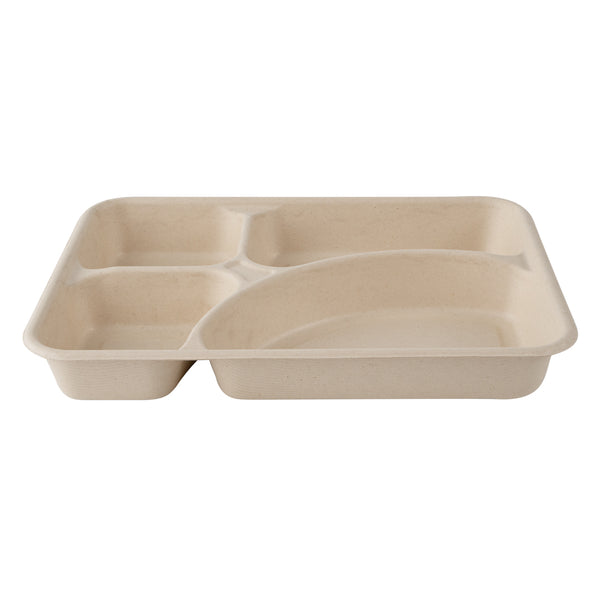 43 OZ RECTANGLE NATURAL SUGARCANE / BAGASSE TO GO TRAY - 4-COMPARTMENT