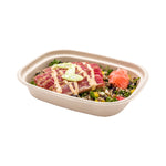 Effortlessly store and deliver delicious meals with our Pulp Tek 48-ounce Rectangle Natural Sugarcane / Bagasse Containers. Constructed from eco-friendly bagasse, repurposed sugarcane fibers, these disposable containers are commercially compostable and biodegradable, making them a great alternative. Built to be microwave-safe and freezer-safe, these carry out food containers are great for reheating or storing vegetables, chicken, brownies, and other tasty foods. Featuring an unbleached finish, these large food containers bring an eco-friendly flair that fits perfectly with the decor at your restaurant, cafeteria, diner, or other foodservice establishment. These eco-friendly take out containers are leak-resistant to ensure that grease or oil won't seep through. Avoid carry out orders from falling out of containers with our compatible flat lids (SKU: RWA0640C). These bagasse containers are crafted to hold up to 48 ounces of food without folding or bending during use. Measuring 9 inches long by 7 inches wide by 1.75 inches tall, these nature-friendly food containers are ideal for securely packing takeaway orders. Sold in a 100 count box. These items will only degrade outside of the traditional solid waste stream. Lids are available and sold separately.