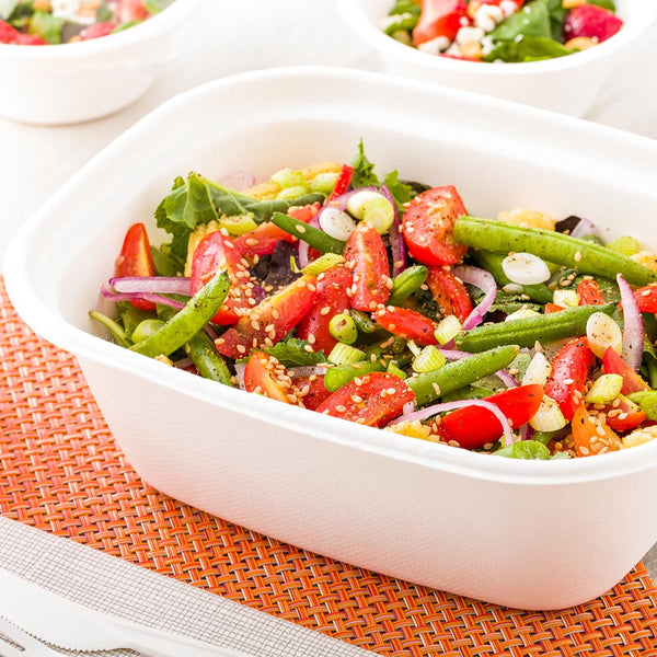 Made from sugarcane fibers, also known as bagasse, these containers are sustainable. Choose from a natural brown finish or a sleek white finish to complement your to-go orders.