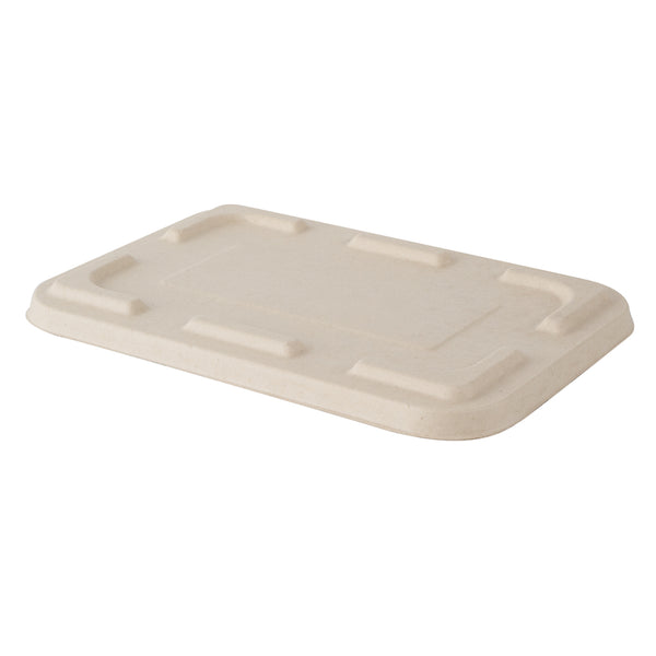 RECTANGLE NATURAL SUGARCANE / BAGASSE FLAT LID - FITS TO GO CONTAINER