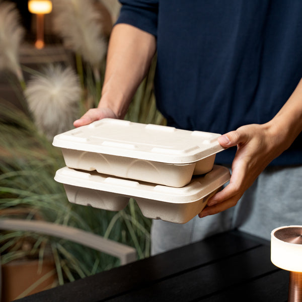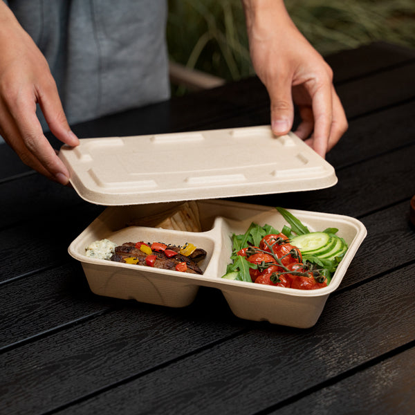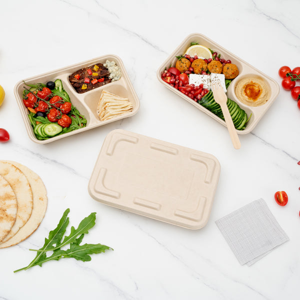 Preserve the quality of food using our Pulp Tek Rectangle Natural Sugarcane / Bagasse Flat Lids. Combine our selection of compatible food containers with lids to keep customers' carry out meals safe during their ride home (SKU: RWA0997K, RWA0998K, and RWA0999K). Commercially compostable and biodegradable, these sugarcane container lids offer a sustainable alternative to conventional lids. These flat lids are grease-resistant, eliminating the stress of messy sauces and oils leaking through and dirtying your guests or dining surfaces. Conveniently microwave-safe and freezer-safe, these to go containers with lids can be placed in the freezer for easy meal storage or in the microwave for convenient reheating. These disposable lids measure 9.5 inches in length by 6.4 inches in width. Sold in a 100 count box. This item will only degrade outside of the traditional solid waste stream. Containers are available and sold separately.