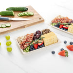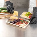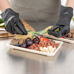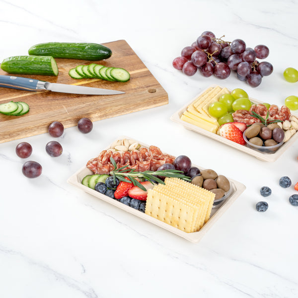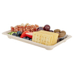 Impress customers with stylish and planet-friendly servings using our Pulp Tek Rectangle Natural Sugarcane / Bagasse Large Sushi Trays. Pair these disposable containers with our compatible clear dome lids to have food ready for take out (SKU: RWA1037C). Constructed from bagasse, a by-product of repurposed sugarcane, these entree serving trays are biodegradable and commercially compostable. To store prepared foods, these disposable trays for food are microwavable and freezable. Featuring a rectangle shape, these snack serving trays are ideal for serving a large number of sushi rolls. With a rustic brown finish, these planet-friendly containers give your presentations a charming appearance. To keep your storage area organized and save space, these bagasse trays are stackable. These sushi trays measure 8.5 inches long by 5.25 inches wide. Sold in a 100 count box. This item will only degrade outside of the traditional solid waste stream. Lids are available and sold separately.