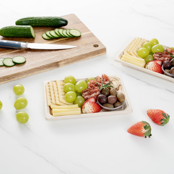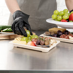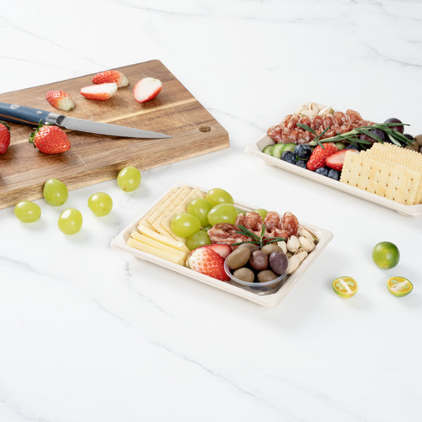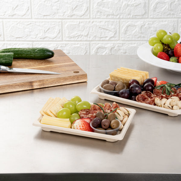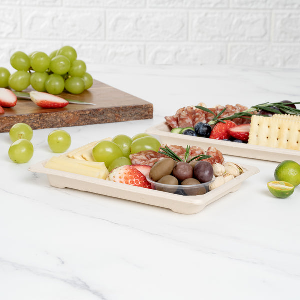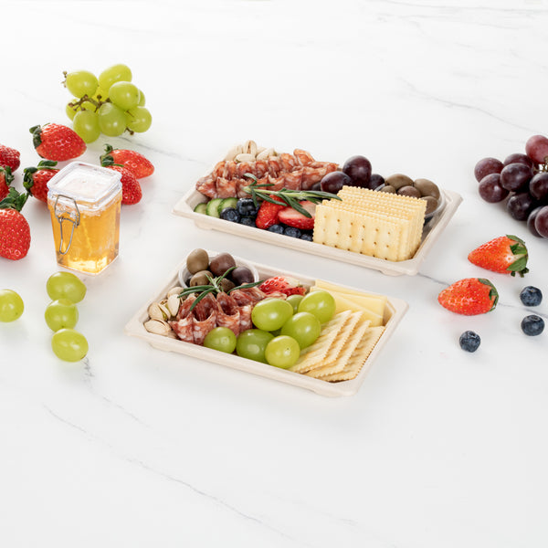Give your sushi presentations an earth-friendly touch with our Pulp Tek Rectangle Natural Sugarcane / Bagasse Medium Sushi Trays. Cover these sushi containers with our matching clear lids to keep food securely contained (SKU: RWA1035C). Crafted from repurposed sugarcane byproducts or bagasse, these appetizer serving trays are biodegradable and commercially compostable for sustainable cleanup. Perfect for reheating leftovers, these brown plates are microwavable and freezable. Designed with a rectangle shape, these biodegradable food containers are great for lining up sushi in a row for a classic look. The rustic brown finish of these trays for food effortlessly complements the aesthetic of guests' events while promoting planet-friendly supplies. To easily organize your storage area, these disposable trays for food are stackable. These rectangle dishes measure 7.25 inches long by 5 inches wide. Sold in a 100 count box. This item will only degrade outside of the traditional solid waste stream. Lids are available and sold separately.