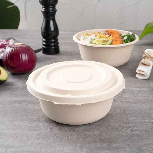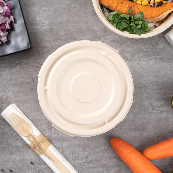 ROUND NATURAL SUGARCANE / BAGASSE FLAT LID - FITS TO GO BOWL