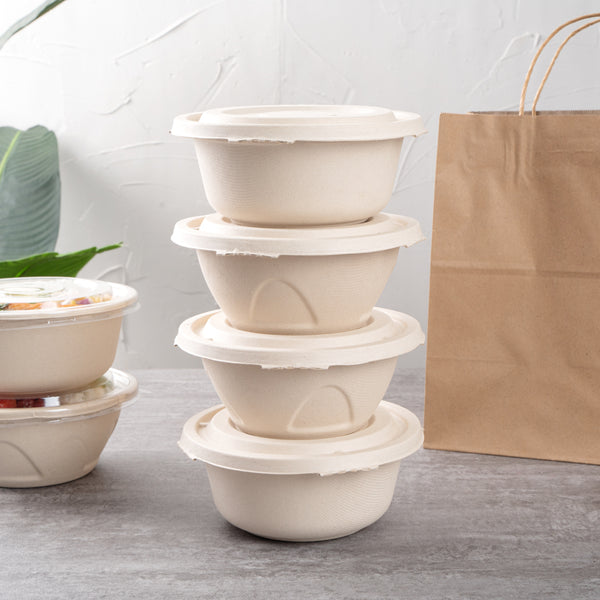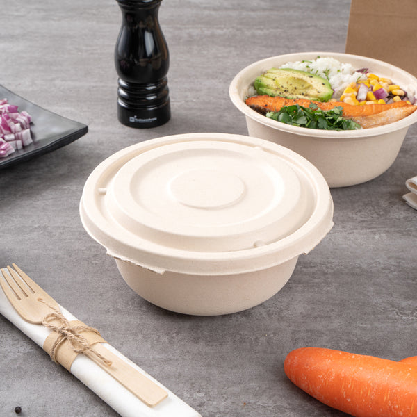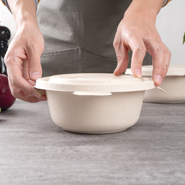 Keep your meals securely contained with our Pulp Tek Round Natural Sugarcane / Bagasse Flat Lids. Match these lids with our collection of compatible Pulp Tek to go bowls to keep your food orders protected while on the go. Made from sugarcane pulp, these food container covers are efficient for a planet-friendly cleaning process at your food service establishment. Built with a locking mechanism, these round lids securely close each bowl to ensure foods don't spill out. To avoid sogginess, these take out container lids avoid absorbing oils. These sugarcane lids are freezable to store your packaged orders in the refrigerator or freezer. Great for keeping meals from getting cold, these bagasse tray lids are microwavable. Featuring a flat design, these flat lids allow you to stack bowls on top of each other for easy organization. These disposable lids measure 7.3 inches in diameter. Sold in a 100 count box.