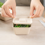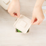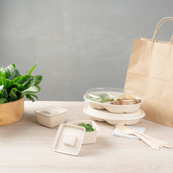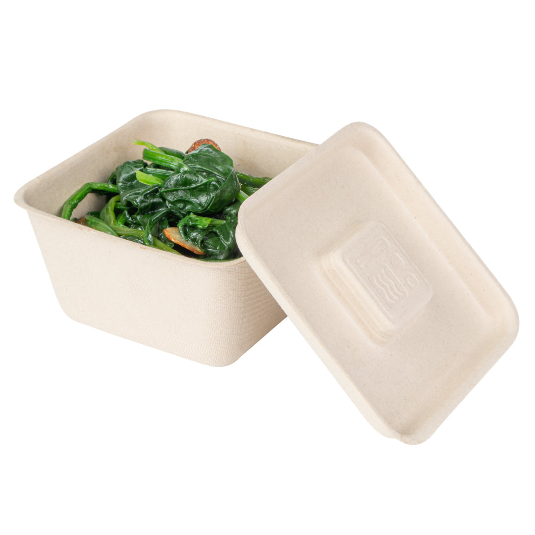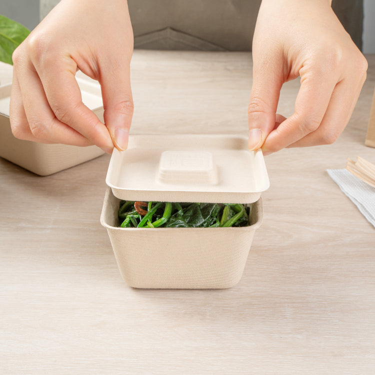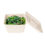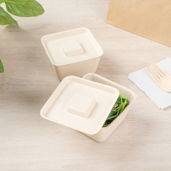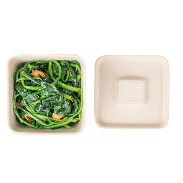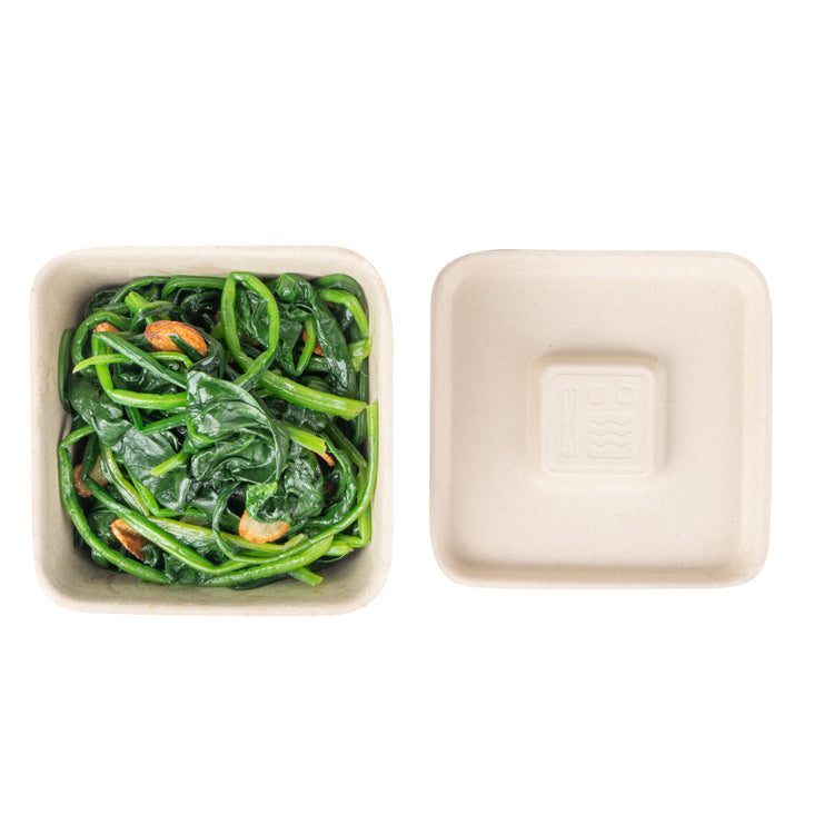 Keep meals securely covered using our Pulp Tek Square Natural Sugarcane / Bagasse Flat Lids. Pair our bagasse food containers with lids to ensure to go meals are reliably contained during transport (SKU: RWA0995K). Constructed from sugarcane fibers, these bagasse lids are commercially compostable and biodegradable to provide a sustainable alternative to conventional take out lids. To prevent oils from leaking through and maintain the appearance of take out orders, these durable container lids are grease-resistant. These repurposed lids are freezable and microwavable to conveniently store packaged meals and reheat orders before serving. Measuring 3.7 inches in diameter, these to go container lids are stackable for space-saving storage. Sold in a 100 count box. This item will only degrade outside of the traditional solid waste stream. Compatible Pulp Tek containers are available and sold separately.