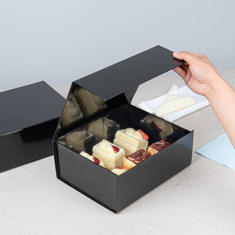 Available in various colors and sizes, these magnetic treat boxes can easily fulfill your packaging requirements. Add an elegant touch to your packaging with these boxes!