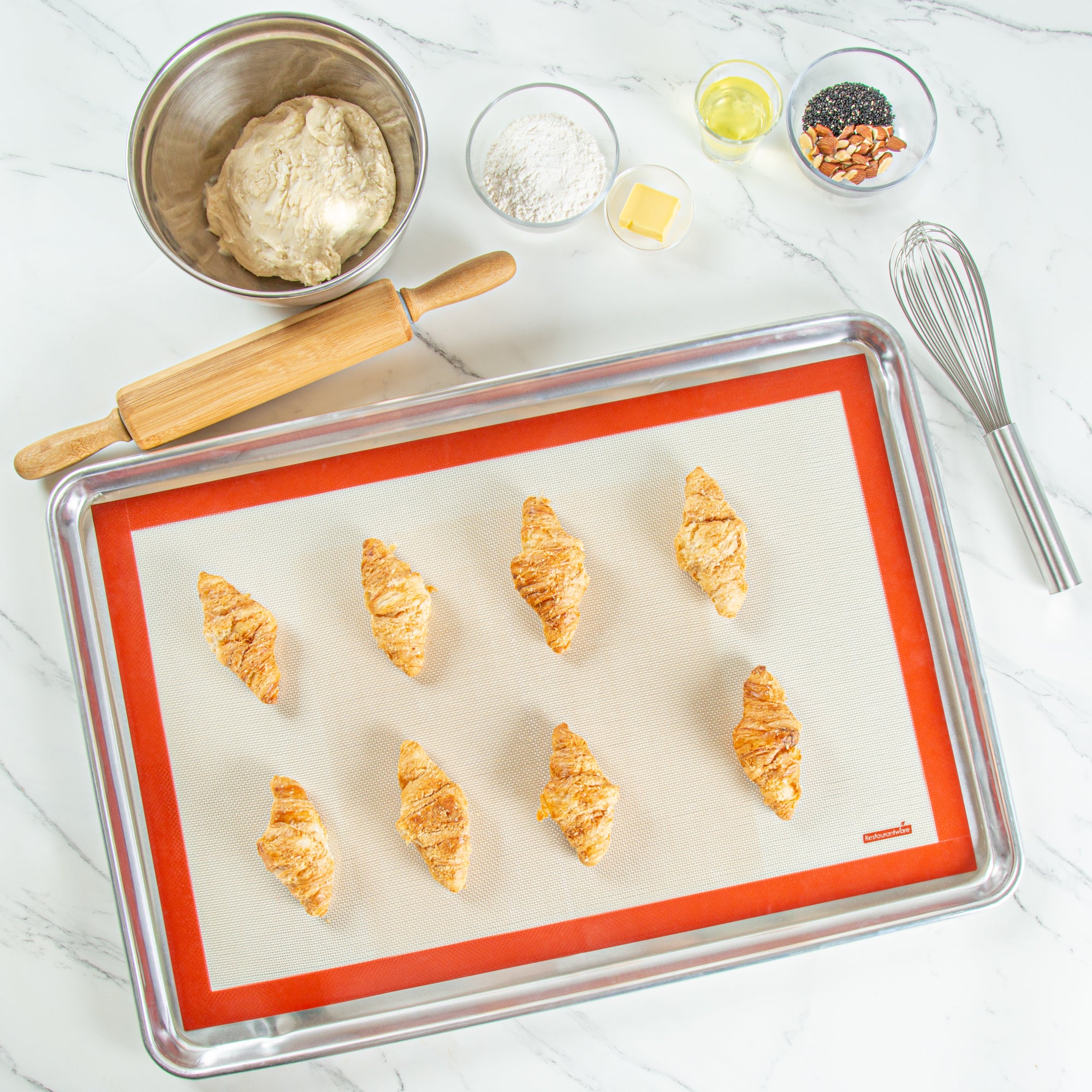 TAN AND RED SILICONE FULL SIZE BAKING MAT - ULTRA DURABLE