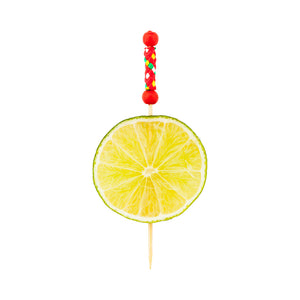 Give your handcrafted cocktails and bite-sized appetizers a much-needed punch of pizzazz with these Red Pixy Bamboo Braided Picks. Featuring multi-hued braided detailing and bright red beaded accents, these biodegradable drink picks are perfect for skewering lemon peels and orange wedges to create amazing cocktail decorations. With their easy-to-hold braided handle, these commercially compostable bamboo picks are excellent for serving bite-sized hors d'oeuvres like teriyaki chicken bites and bacon-wrapped dates. These braided bamboo picks are suitable for picking hot and cold foods. Measuring 4 inches long, these red picks are ideal for large catered events. Sold in a 1,000 count box.